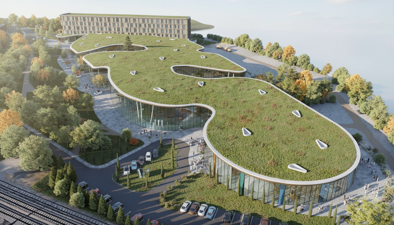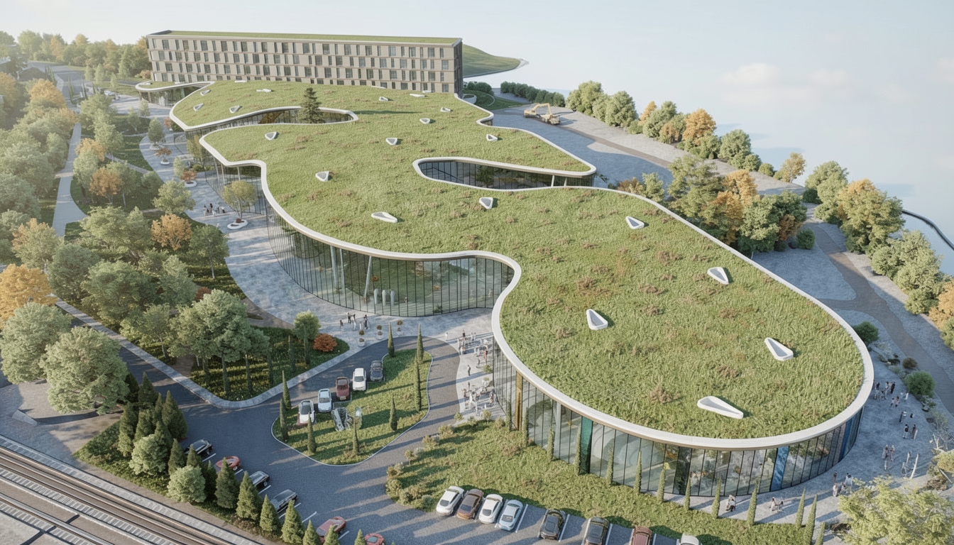 place a modern cabin with a walk out basement on the hillside face the main glass in the cabin to take advantage of the snow capped mountains