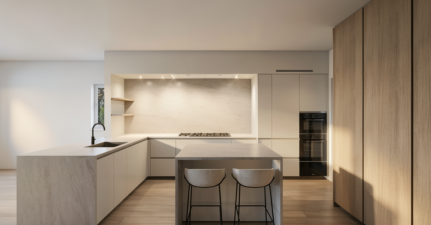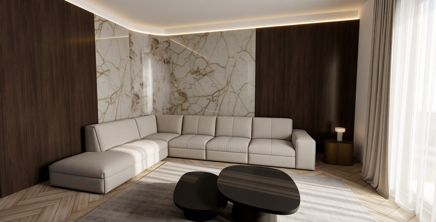 exterior shot of a a luxury modular house retrat the bed is on the center of the wall with nightstands on each side and different bed side lamps on the right there is large corner window and a hidden bathtub behind the wall with the bed you can see the bathtub partially the floor under the bathtub is covered with small white stones and the bathtub is surrounded by tropical plants on the left side of the bed there is the door for the bathroom the floor of the bedroom is made from hardwood floor natural tone with cracks and wear areas to look more realistically the walls are cladded with a with a bumpy textured surface that looks like sand dunes beige and earth tones design the rooms must look like a very instagram post ready bedroom there are hidden led strips in the wall on the right side there are very large floor to ceiling windows and there is warm sunlight with warm shadows the roof is slanted on the left is lower and on the right is taller all elements have sharp details the bathtub is on the same level with the bed the exterior is claded with beige textured walls there are plants around the terrace there is furniture on the terrace sharp details on all elements
