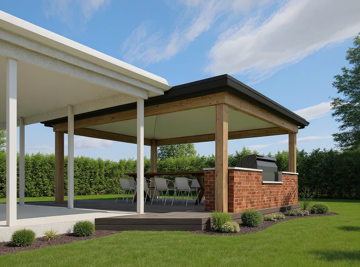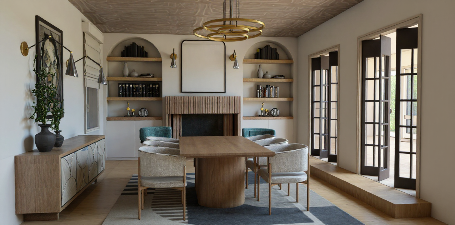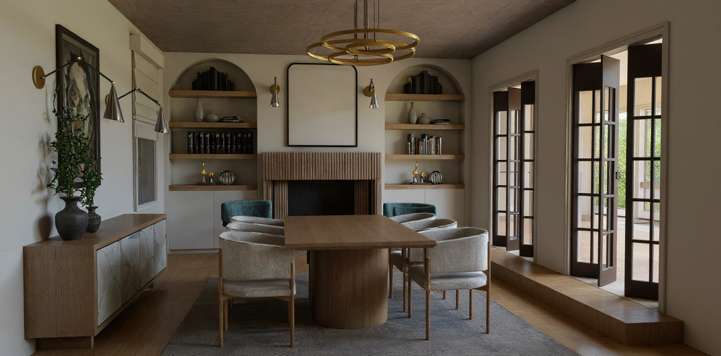 render highest quality textures and photorealism lighting from downlights in ceiling 55mm cornice above cabinets to be painted white to match walls kickboards under cabinets in brushed steel finish strip lighting under overhead cabinets benchtop to be stone afternoon sun coming into room glasssplashback in olive green colour