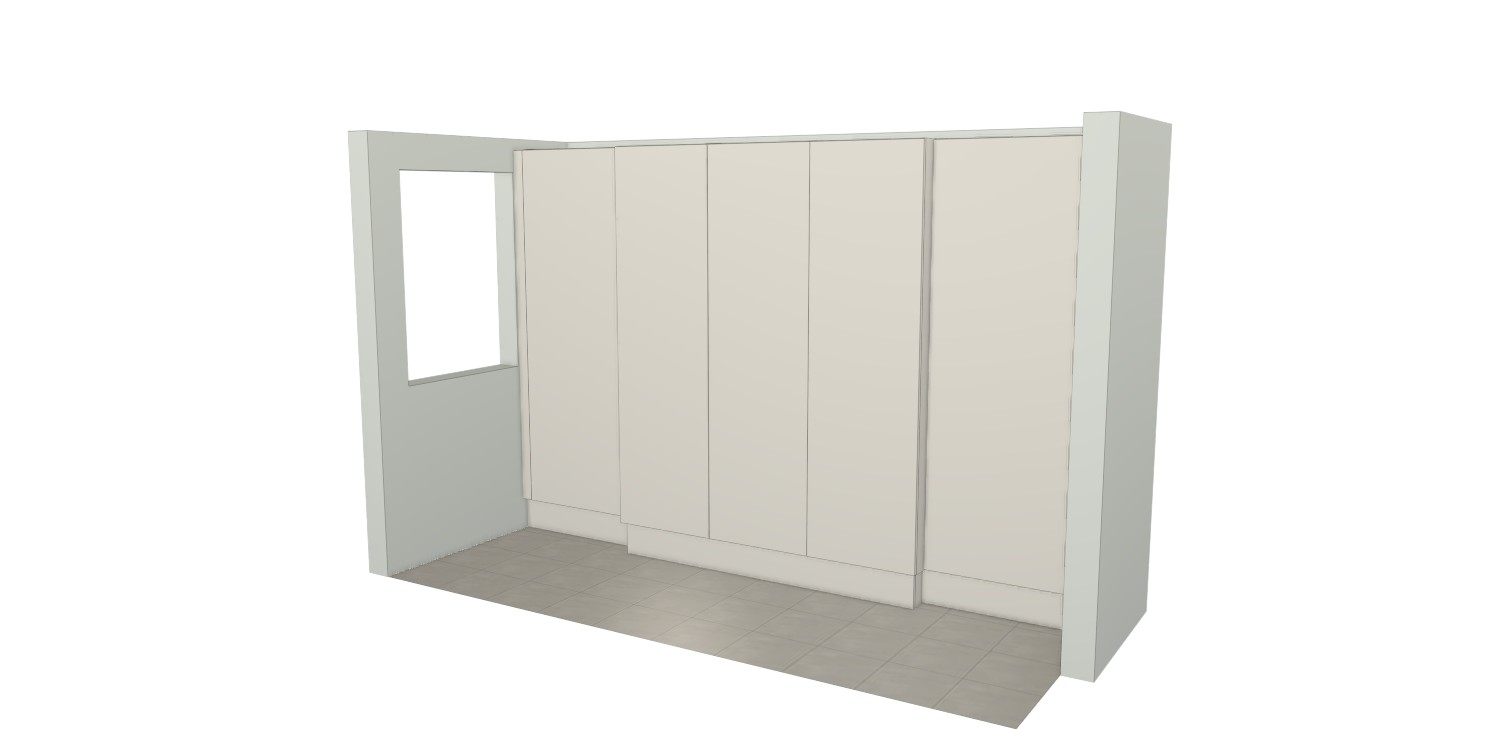 make the window on the left a french window add a skirting to the front of the wardrobes don t interfere with the doors the floor should be oak herringbone