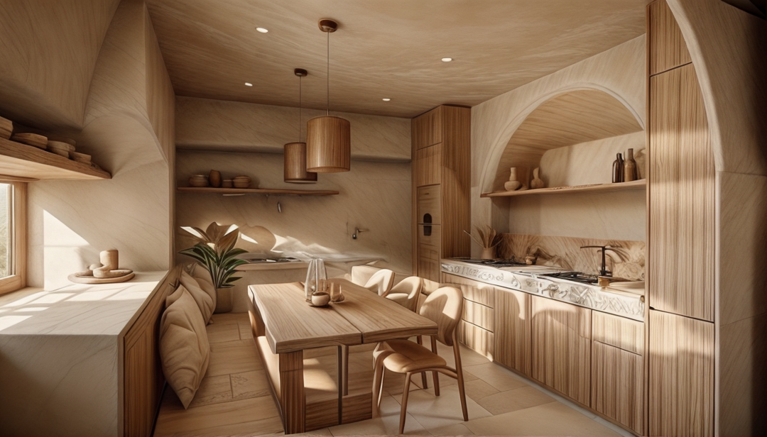 maintain the light to see the details under the roof wal material black burned wood posts forest landscape pond roof is pigmento brown