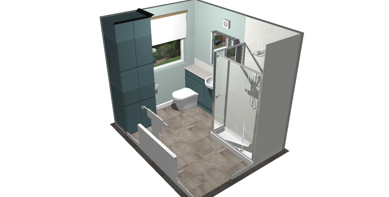 fjiord blue doors add lighting and a woman in the shower