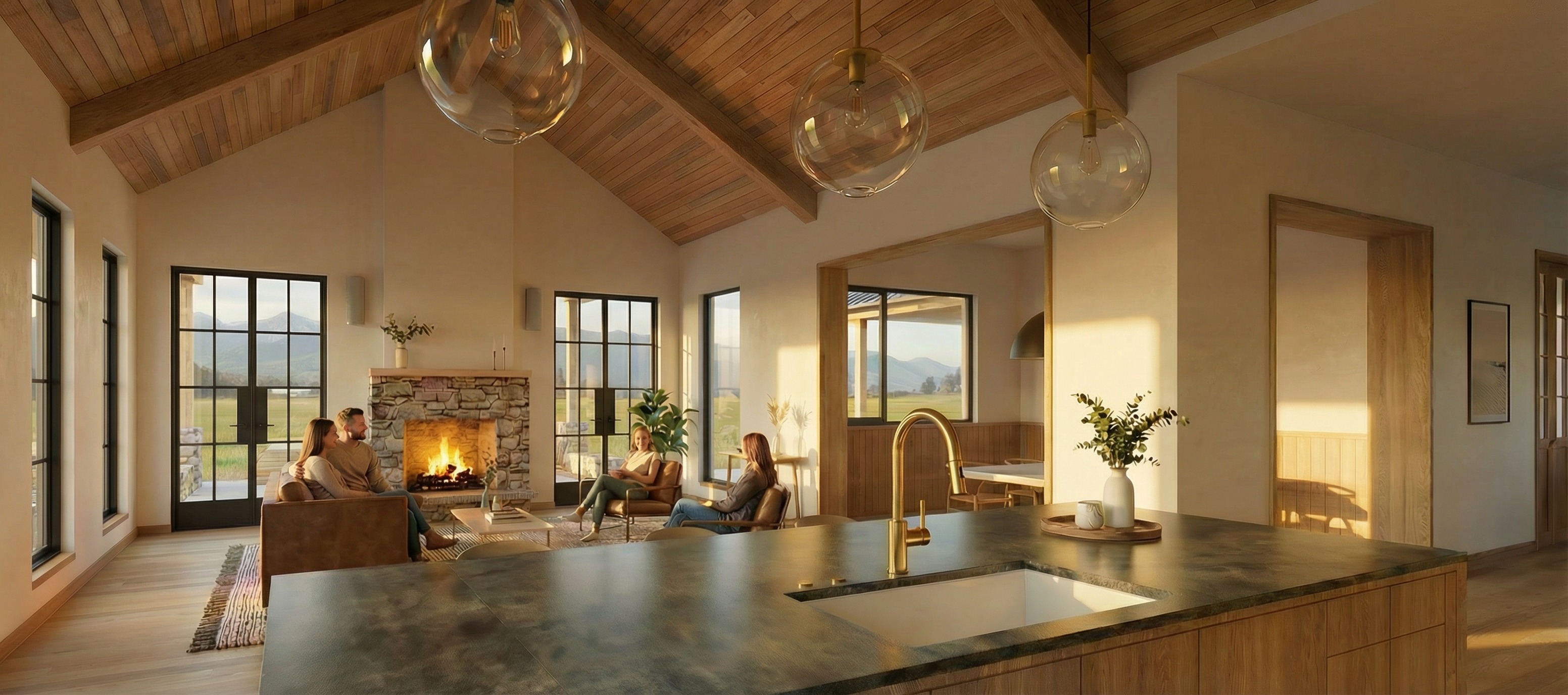 everything in the image stays the same except add a large set of antlers on the wall above the fireplace keep the wall white and just add the antlers