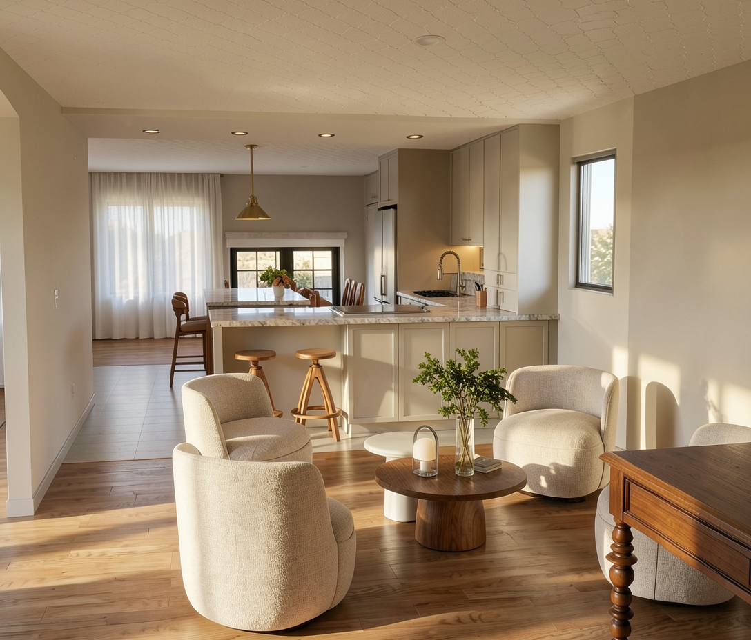 that is not a window at the back on the right it is a blue tile fireplace with white mantle sliding patio door beside fireplace