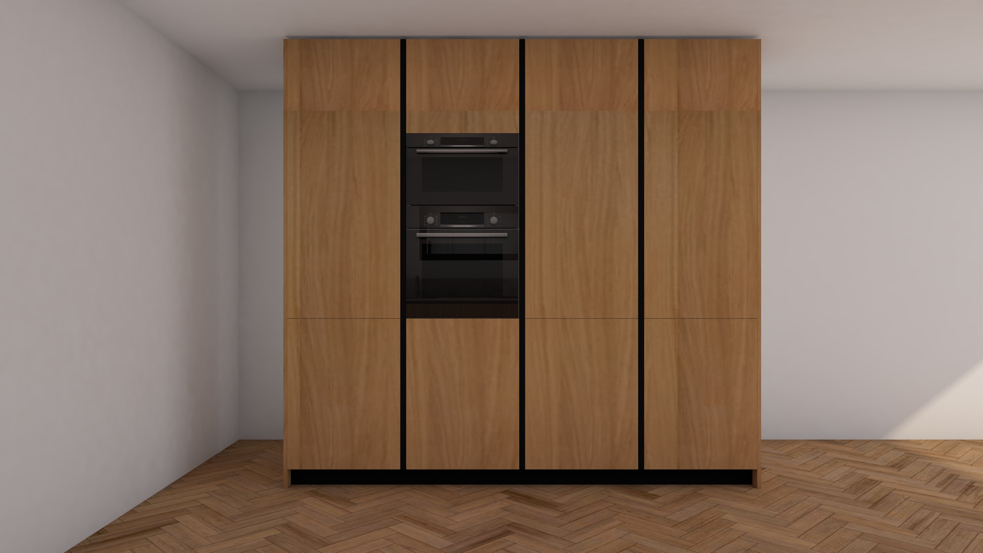 interior design render of a contemporary kitchen natural honey toned oak wood islands and cabinetry with a seamless matte finish white stone countertops soft ambient lighting minimalist aesthetic with a focus on wood texture and organic materials soft volumetric lighting hyper realistic wood grain details