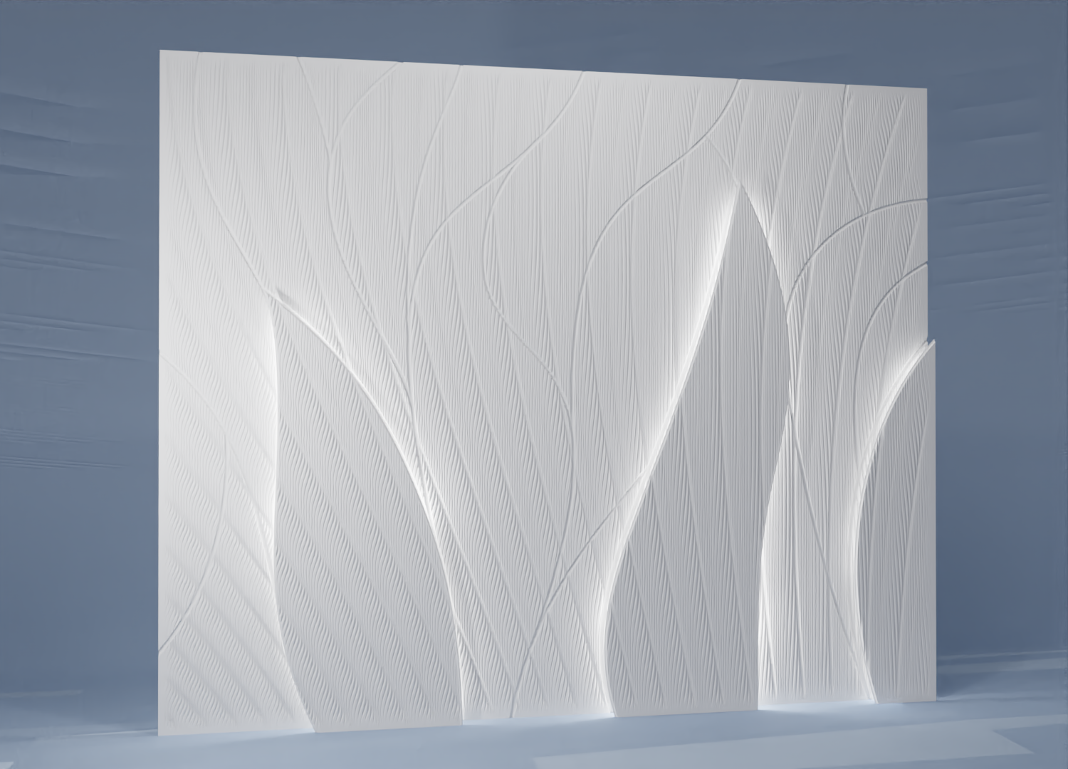 3d carved feature wall surrounded by a soft luxe hotel spa lobby with high touch design creating a warm clean atmoshere