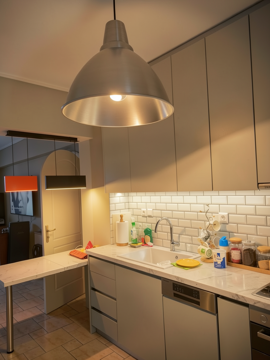 render a modern office interior with warm ambient lighting the walls should be a soft gray creating a calm and sophisticated atmosphere the ceiling and floor are a deep charcoal enhancing the modern look the furniture is crafted from rich walnut wood providing contrast with the darker elements windows are large with sleek black frames allowing natural light to softly illuminate the space subtle greenery on the window sills adds a touch of life and color to the monochrome palette the lighting fixtures are minimalist and black complementing the contemporary design the overall atmosphere should feel professional yet welcoming with a balance of light and shadow to highlight the textures