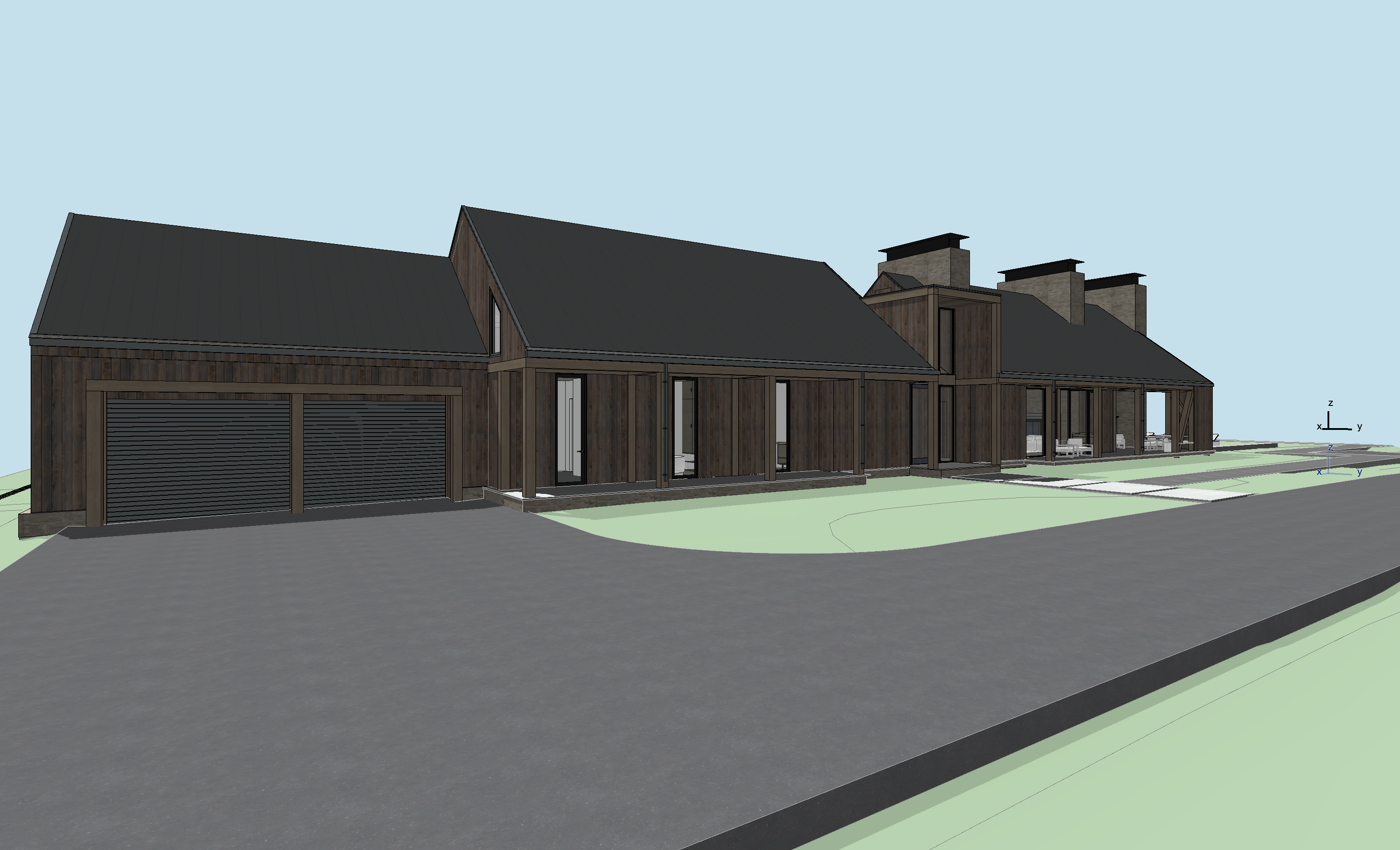 grassy wyoming landscape rolling hills reclaimed wood siding enahnced lighting asphalt driveway
