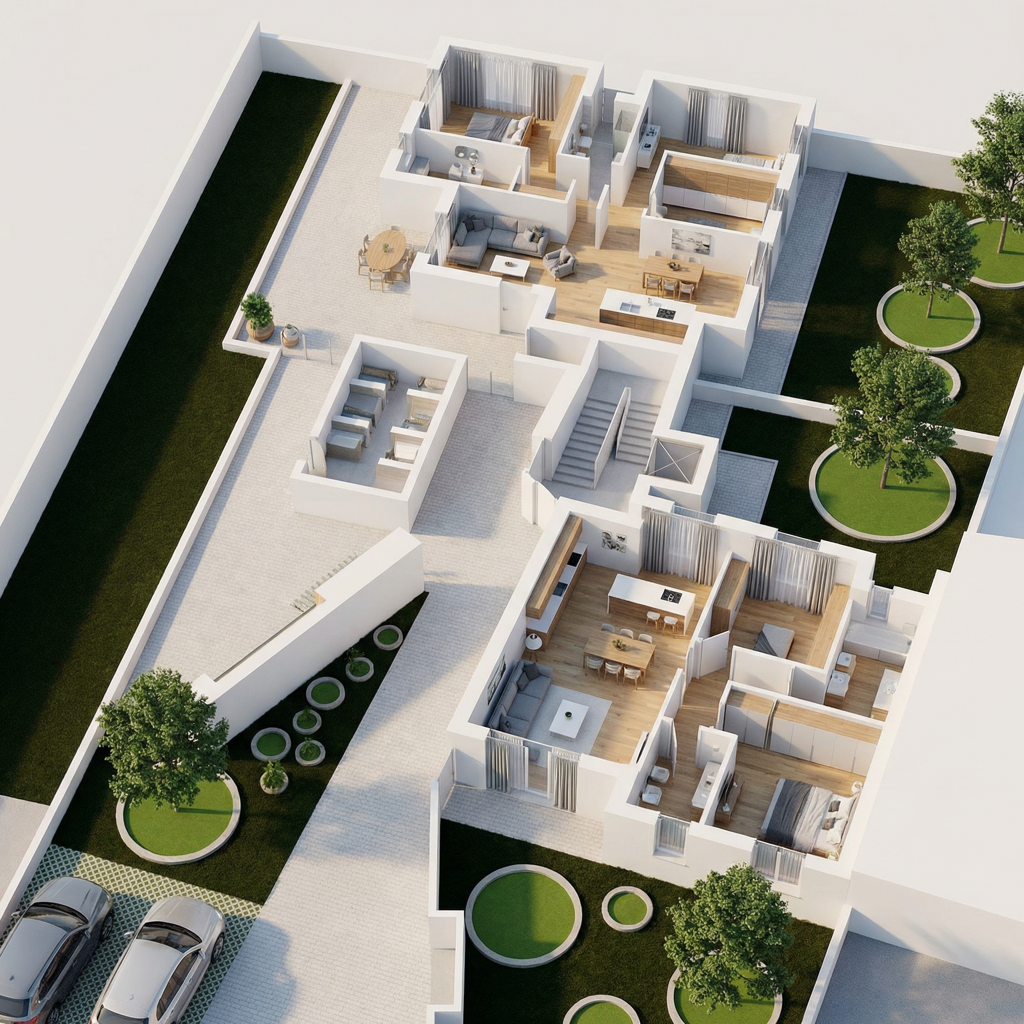 make it realistic add some small mediterranean vegetation at the garden