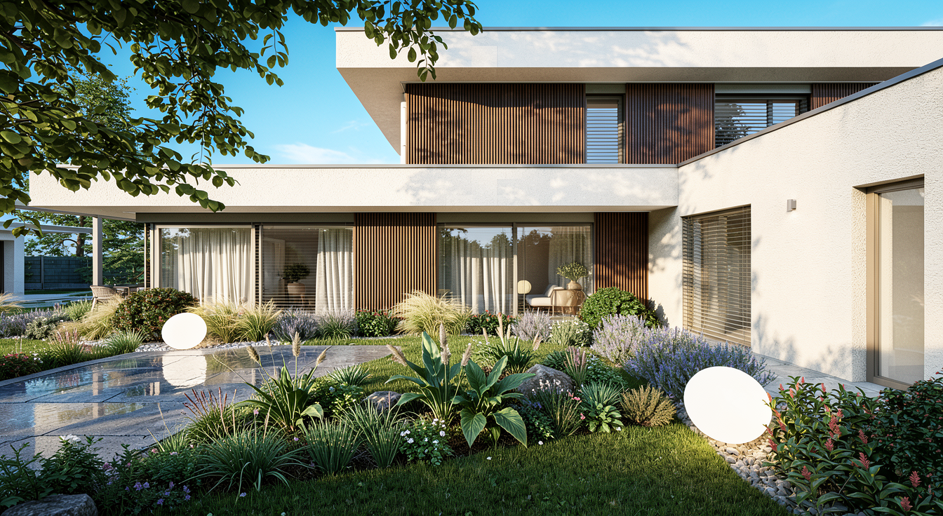 extra realistic render hotel add mediteranean trees and plants golden hour