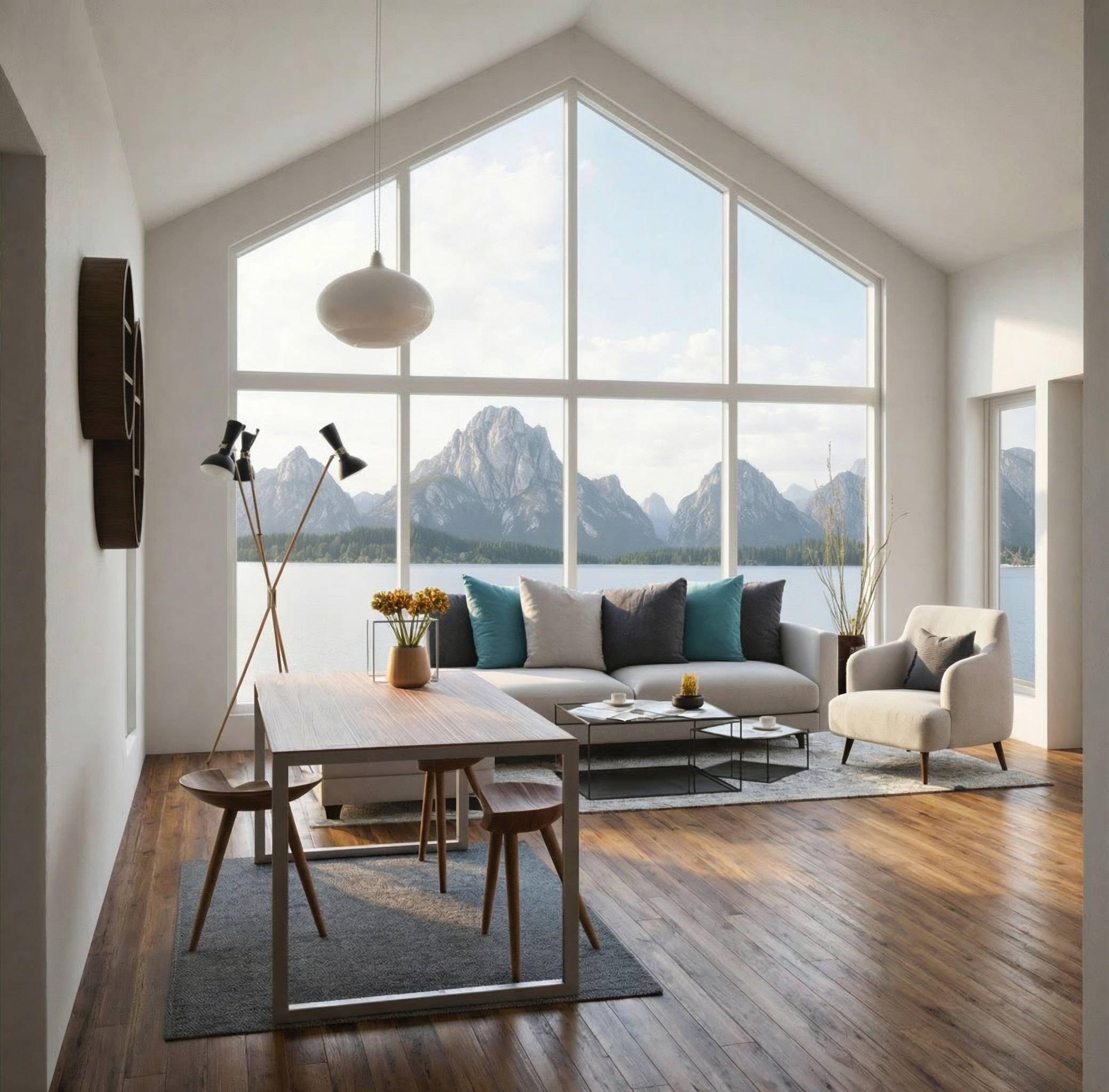 create a realistic 3d view of the kitchen in a bright room gentle sunlight enters the room creating light shadows and a pleasant atmosphere kitchen colour schedule benchtop quantum zero white swirl doors panels satin polyurethane finish colour light beige snow kickboards as door colour polyurethane finish proud kickboards to ends and rear of island bulkhead shadowline as door colour handles in brushed matt brass white walls paint colour natural oak wood on the floor make white ceramic sink on the island