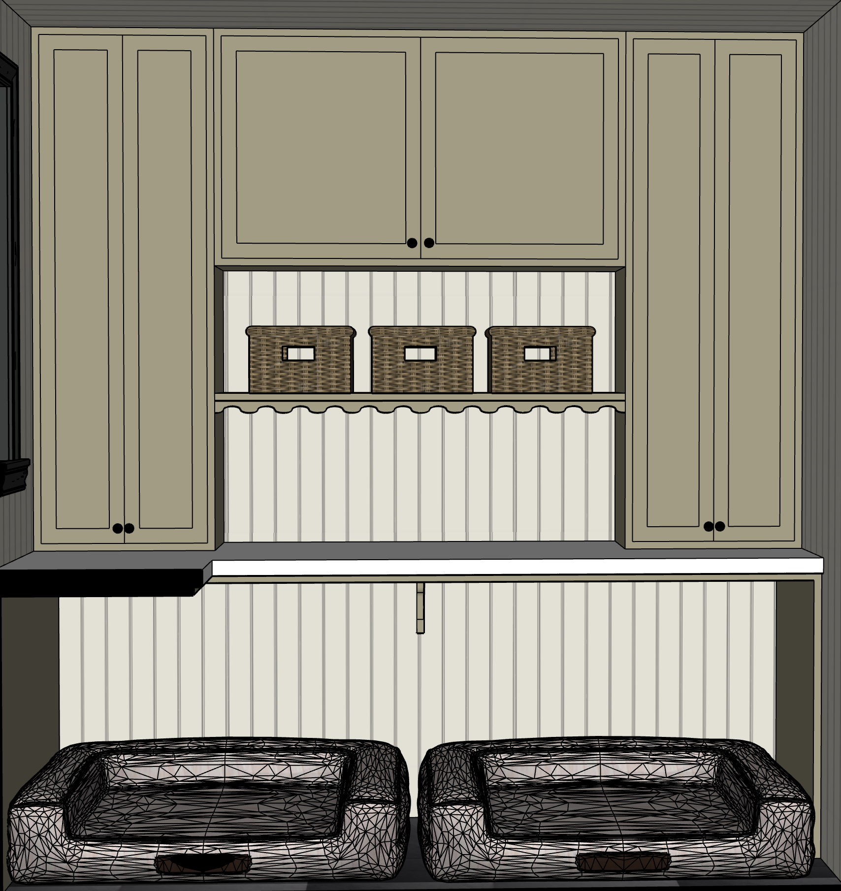 keep accurate colors and textures two dog beds underneath counter for two black labs good lighting