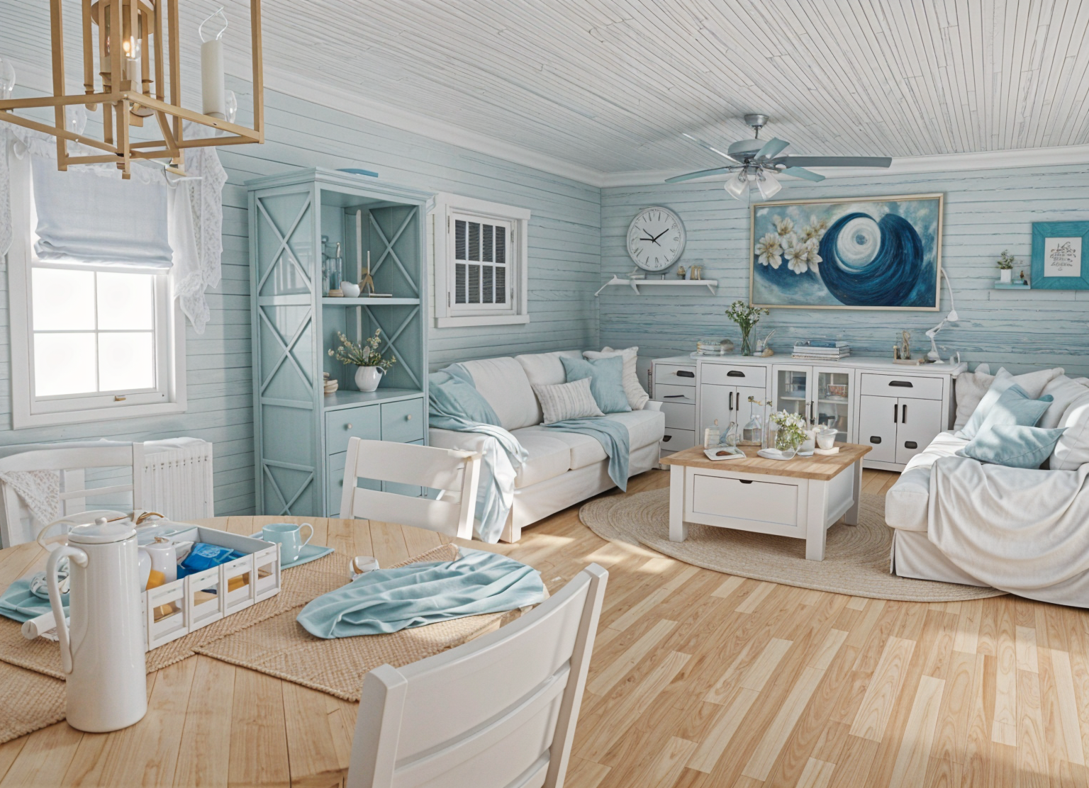 based on the image create a phot real image showing soft lighting and shadows do not change the lamps or the wall colour