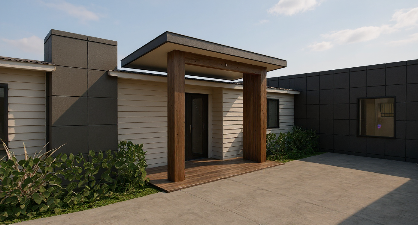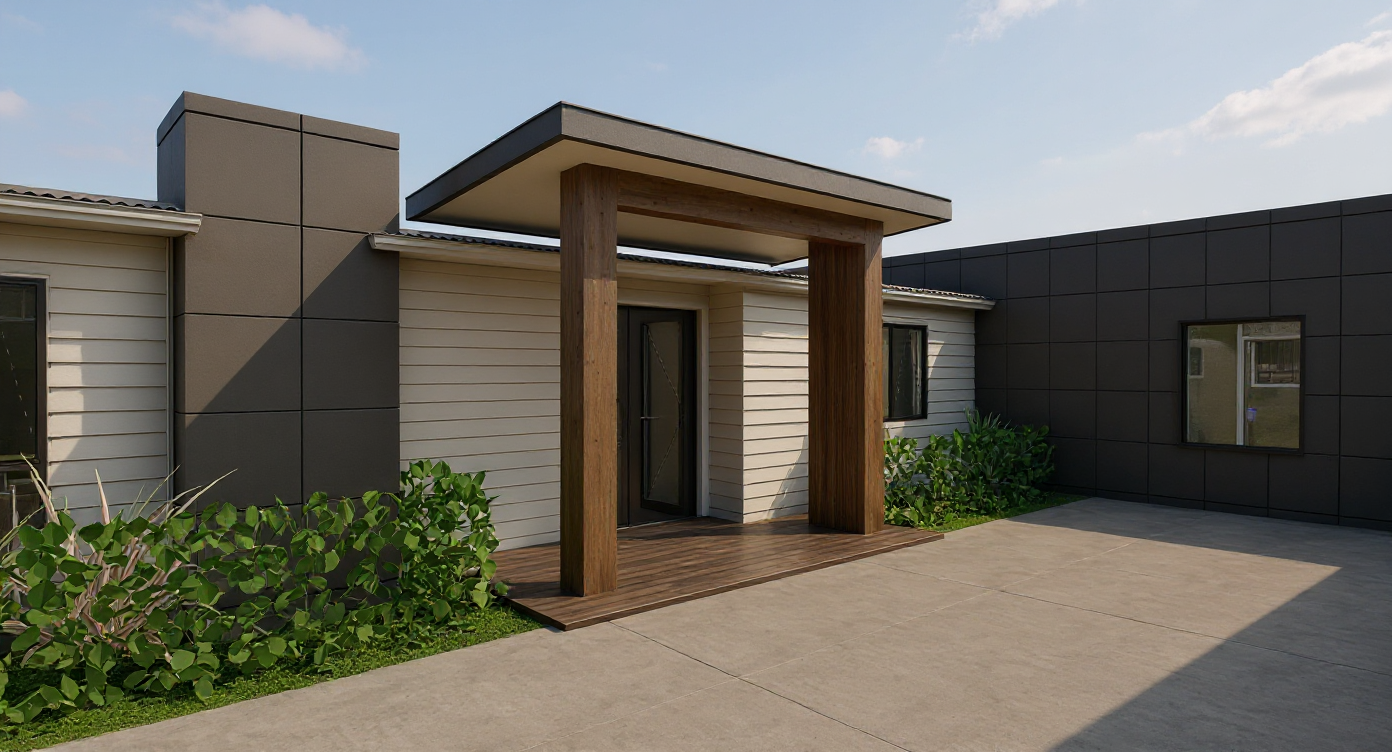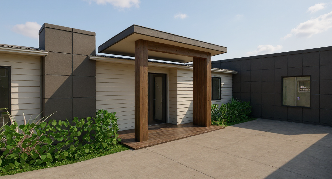 please give me a new front door elevation the entire front door and window above create something that falls in line with the style of this home