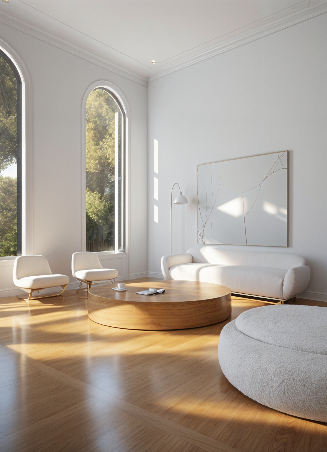interior shot match the sofa upholstery and leather colour and green walls make the lighting warm white and add crockery on the table
