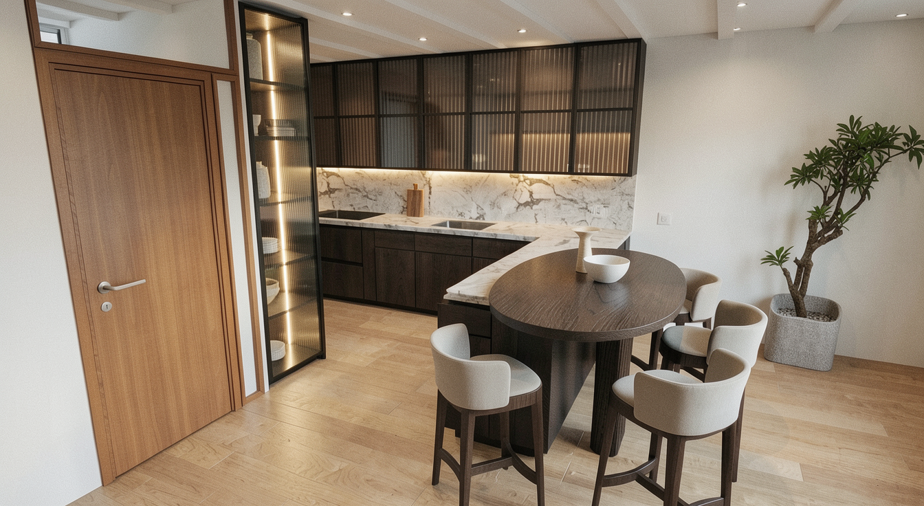 create a photorealistic interior photograph based strictly on the provided design visualization preserve the exact layout proportions furniture placement colors and all design elements without any changes or additions this is a realism enhancement task not a redesign use high quality natural materials with realistic textures wood fabrics matte surfaces and accurate detailing improve material realism while keeping original colors and finishes lighting should be soft natural daylight with subtle shadows creating a warm inviting atmosphere use balanced exposure realistic highlights and no overexposed areas add gentle ambient light for depth maintaining a cozy and harmonious mood camera should mimic a professional interior photography shot eye level perspective 24 35mm lens equivalent sharp focus high dynamic range and natural depth ensure high resolution clean composition no distortion no added objects and no stylistic reinterpretation the result should look like a real photograph of the exact designed space