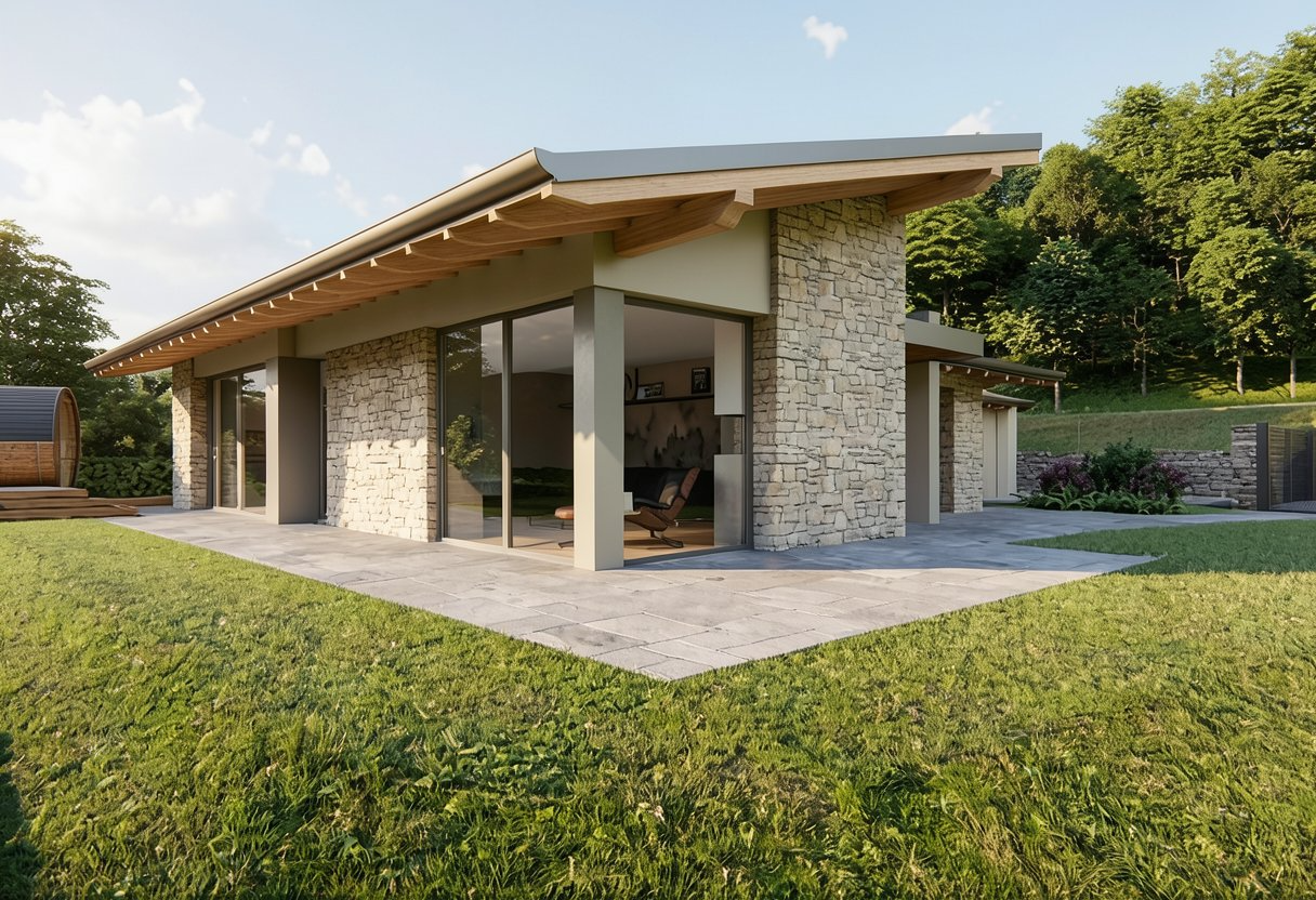 exterior shot cambia il colore dell intonaco usando il colore di riferimento che ti ho caricato cambia solo intonaco non modificare la pietra e i pilastri