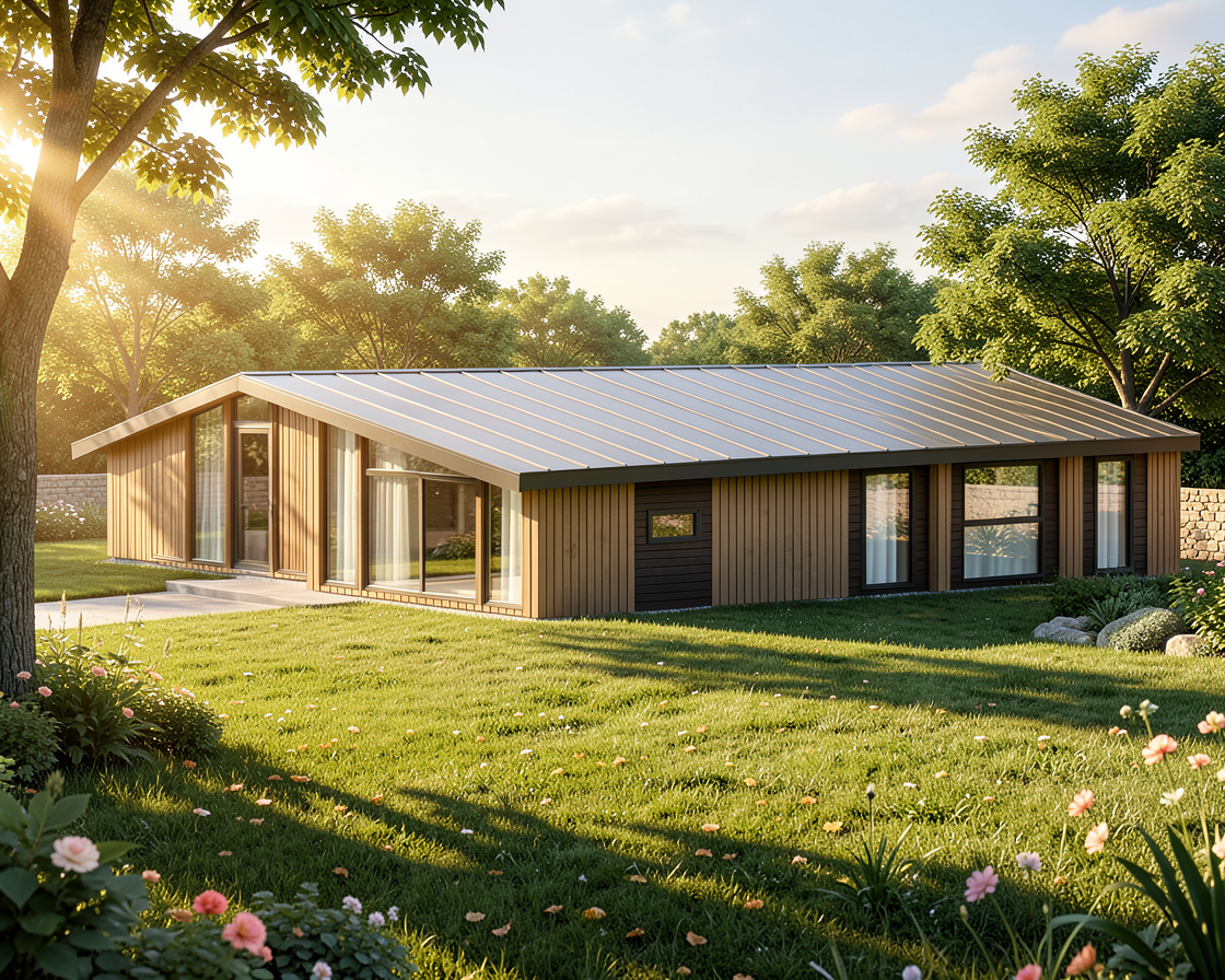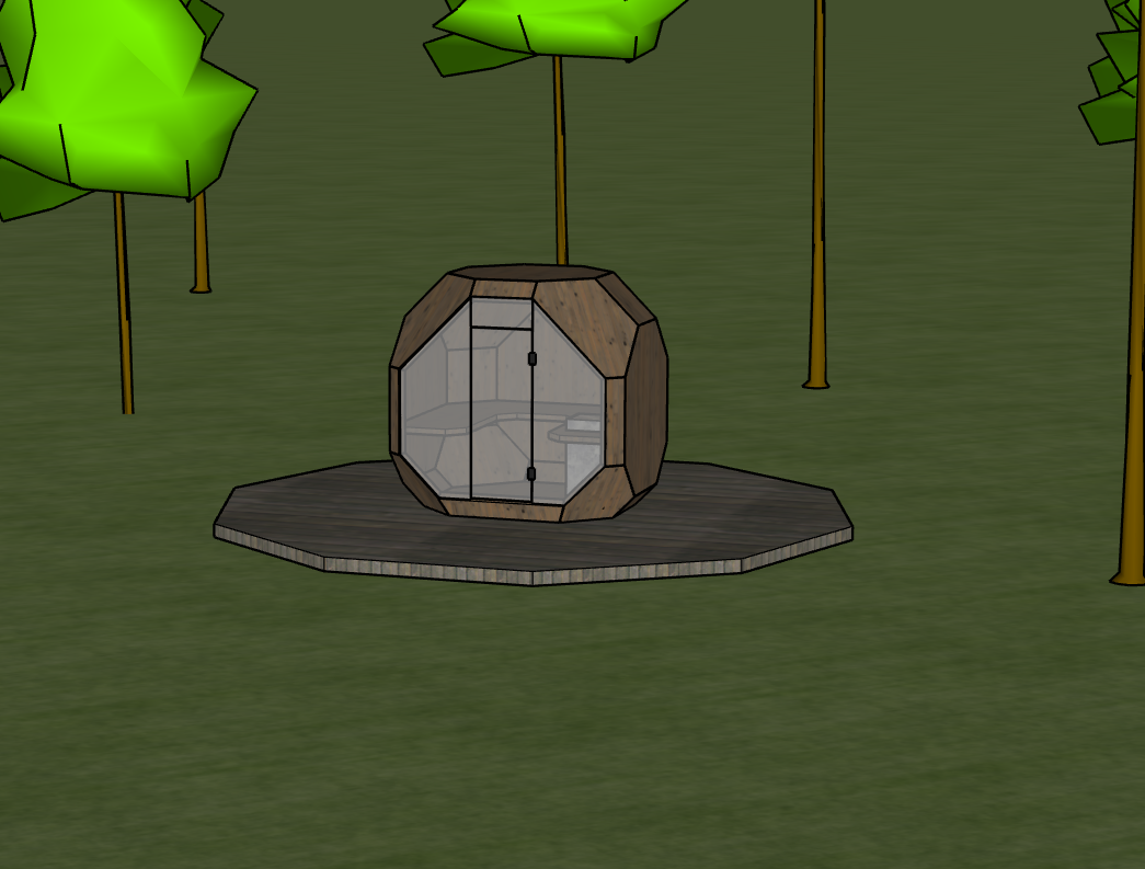 render a photorealistic 3d perspective of this sauna in alps the current material style black siding dark grey terrace keep model geometry the same windows doors roof walls make a green meadow do not change relief do not change the view only enhance the current materials and make the landscape nicer vegetation detailed textures in the wood siding and glass reflections and a vibrant clear sky with light atmospheric depth render in hyper realistic architectural visualization quality 8k resolution do not add new buildings