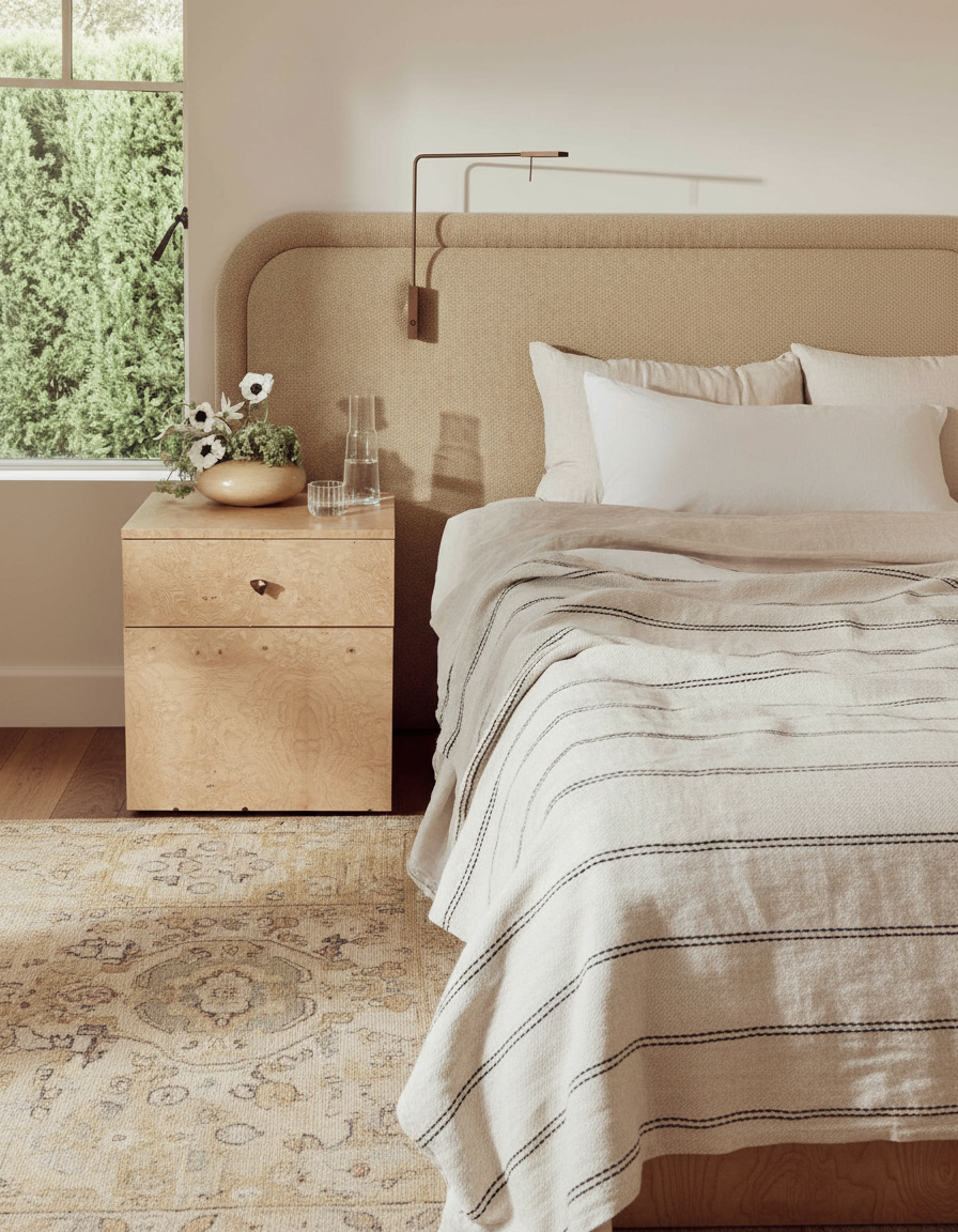 show the full view of this image ensure the entire width of the bed is visible keep the rustic linen texture of the bed throw