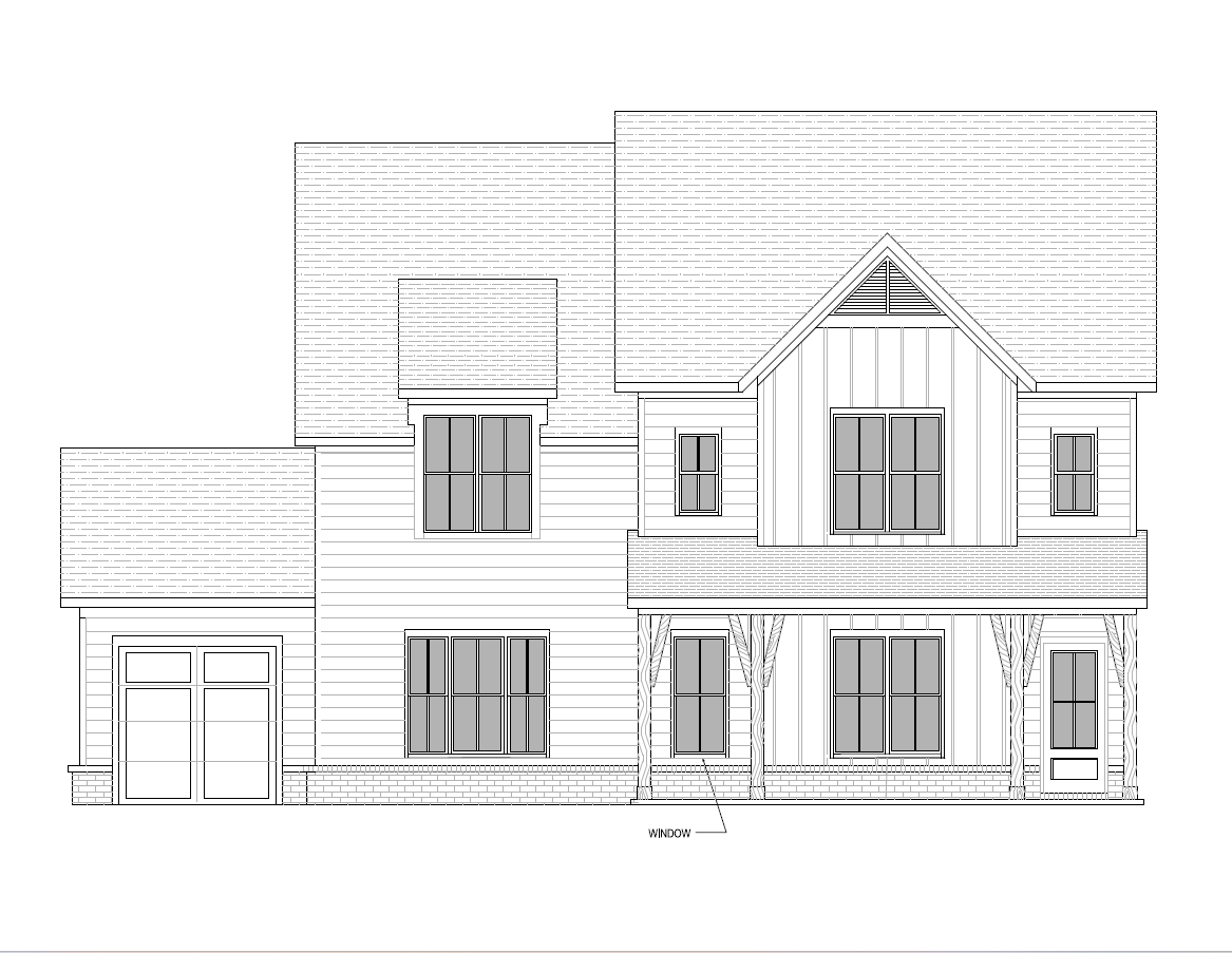 farmhouse or transitional under porch is single window twin window then single door keep all materials and lines the same as the cad drawing