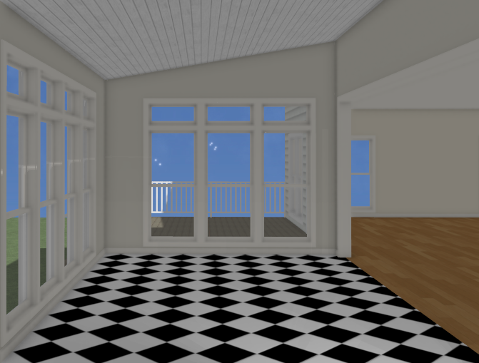 show a rustic table with seating for 8 add detail outside of the windows keep the floor the same