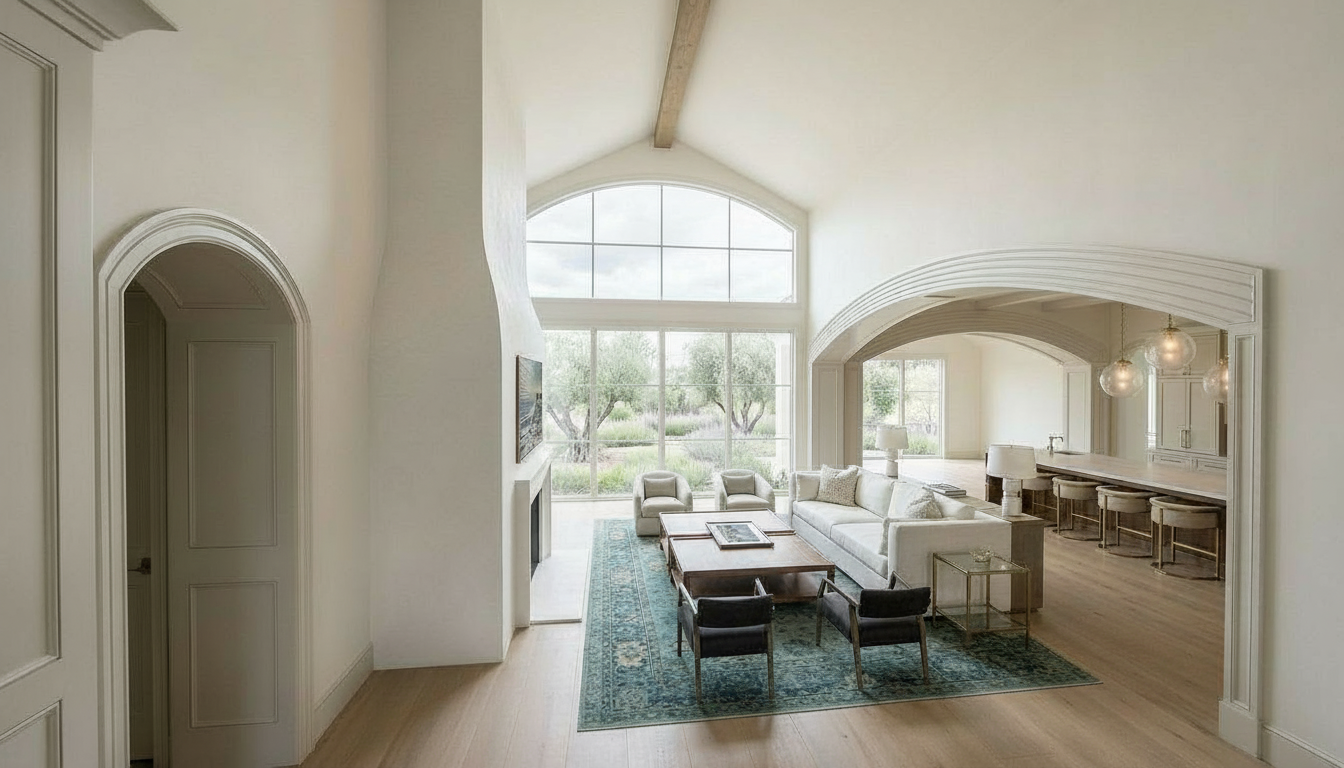 can you make the rug a little more muted in color and make the image look a little more photo realistic
