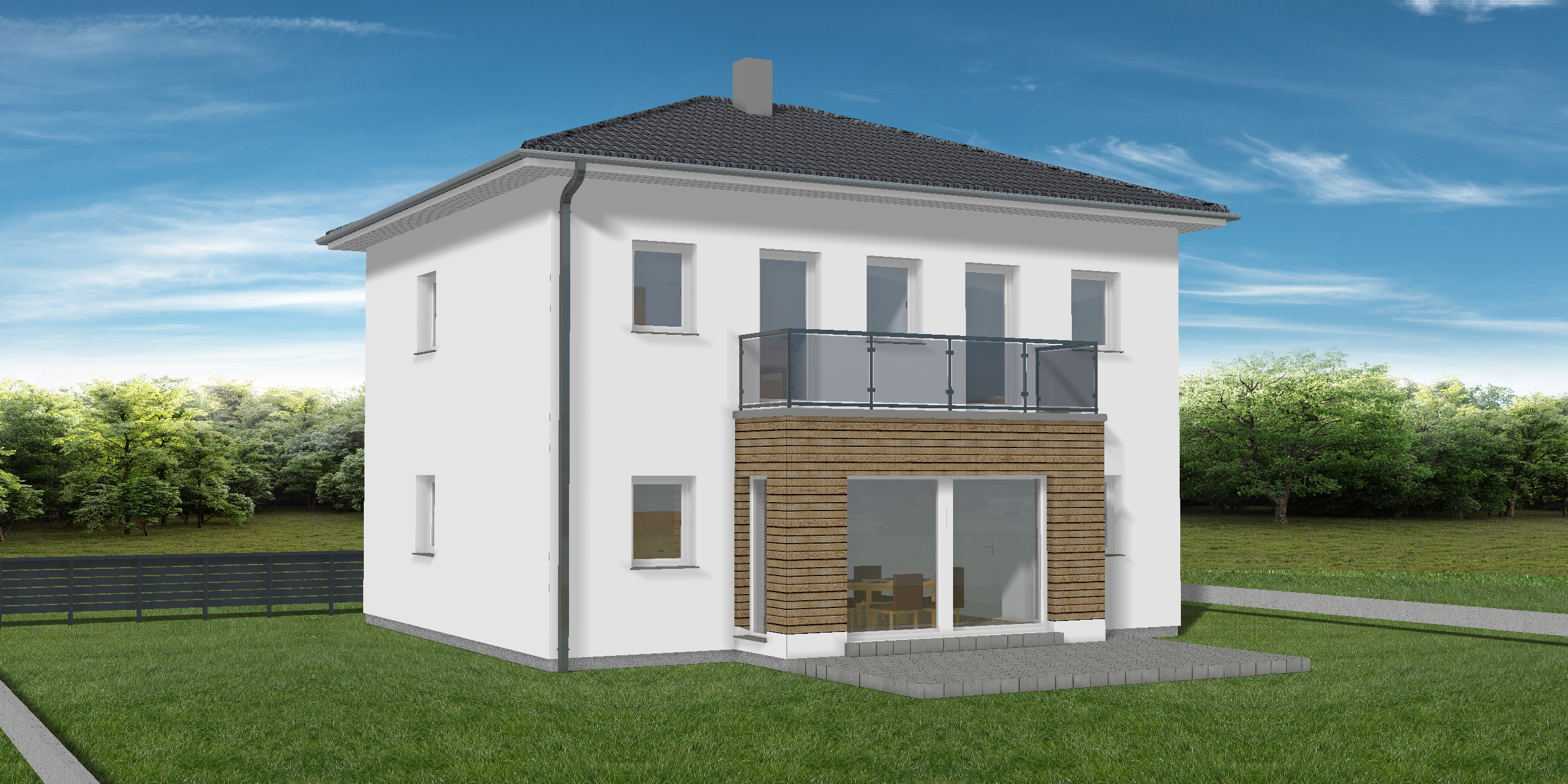 visualisiere das haus mit wei er fassade wei e fensterelemente und der waagrechten holzschalung l rche mit abstand wie am bild bereits angef hrt terrassengr e ebenfalls wie bei der vorlage gartengestaltung dezent mit blumen bzw pflanzen dezente terrassenm beln einplanen das haus steht zwischen zwei bestehenden h usern in einer bewohnten gasse und nicht auf einer freien wiese