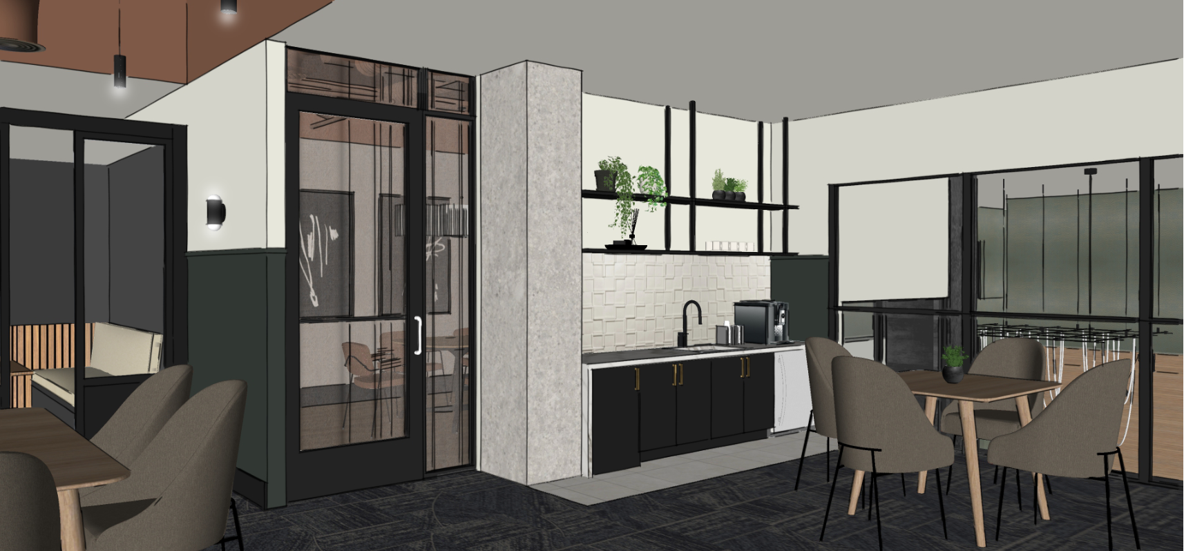 this room does not have any windows to the outside only glass parittions looking into adjacent conference rooms and meeting booths