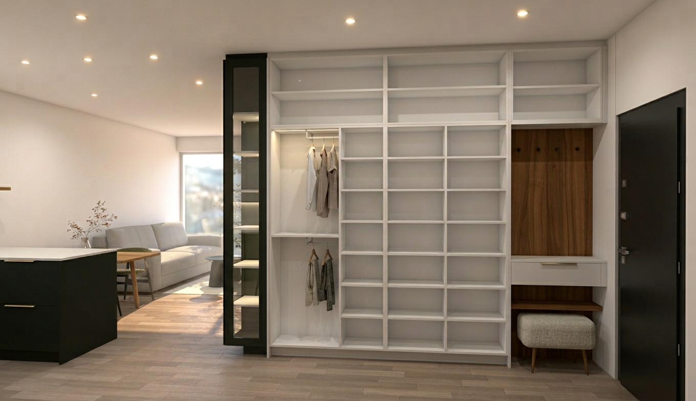 photorealistic luxury restaurant interior same spatial layout and architecture same wide angle perspective and camera angle complete furniture replacement with modern light luxury style overall atmosphere bright and airy warm cool color balance warm ivory and champagne tones as base cool accents soft sage green dusty blue pale mint golden hour natural daylight from right windows soft warm ambient glow from pendant lights luminous and sophisticated atmosphere color temperature 4000k balanced warm cool dining chairs replace all elegant curved dining armchairs seat and back warm cream boucle fabric accent chairs variation soft sage green velvet slender brushed brass tapered legs organic rounded shell silhouette plush cushioned seat with gentle lumbar support consistent mix of cream and sage throughout space all chairs replaced in foreground mid and background dining tables replace all rectangular dining tables tabletop light warm gray veined marble slab subtle white and champagne gold veining satin polished finish base brushed brass geometric frame splayed brass legs with refined taper slight overhang on all sides all tables replaced including background carpet replace replace gray carpet with large area rug in warm ivory and soft sand subtle abstract pattern in pale gold thread soft sage green organic motif border same coverage area lighter and warmer tone wall artwork replace three paintings replace tropical parrot paintings with left panel large abstract artwork soft sage green and warm ivory brushstrokes organic flowing shapes botanical inspiration gold leaf accent details center panel warm cream abstract delicate champagne gold and blush layered texture right panel cool dusty blue and ivory minimal line art with gold detail all three in thin brushed brass frames gallery lighting from above pendant lights enhance keep same cascading pendant cluster formation upgrade shades to brushed brass dome shades with warm inner glow warm amber light emanating downward same quantity and arrangement preserved people add naturally add 6 8 elegant dining guests table 1 foreground left couple dining woman light cream dress man smart casual navy engaged in conversation wine glasses raised table 2 center group of 3 4 professionals business casual attire warm neutral tones relaxed lunch atmosphere table 3 background right couple casual elegant smartphone on table background 1 2 waitstaff in motion crisp white uniform with brass name badge carrying plates or pouring water all figures natural poses not stiff diverse representation asian and western guests greenery add strategically large statement plant right corner near windows ficus lyrata fiddle leaf fig in brass planter height 180cm full lush leaves mid space room divider area tall areca palm in warm travertine stone planter creates natural separation between seating zones table centerpieces upgrade to small bud vases with single stem flowers white ranunculus or blush peonies paired with sprig of eucalyptus window ledge trailing pothos or monstera cascading green along window frame all plants lush healthy bright green natural and organic integration table settings upgrade crisp white linen napkins folded elegantly warm champagne gold rimmed plates crystal wine glasses catching light brushed brass cutlery small votive candle in brass holder menu cards in brushed brass clip stand preserve unchanged overall spatial dimensions and layout floor to ceiling windows right side hong kong city skyline view through windows travertine wood panel wall left side glossy tile flooring border open kitchen visible in background ceiling structure and proportions outdoor terrace visible through windows modern light luxury restaurant contemporary fine dining atmosphere warm cool color harmony japandi meets italian luxury aesthetic photorealistic architectural visualization 8k ultra resolution natural daylight wide angle interior photography vibrant yet refined atmosphere