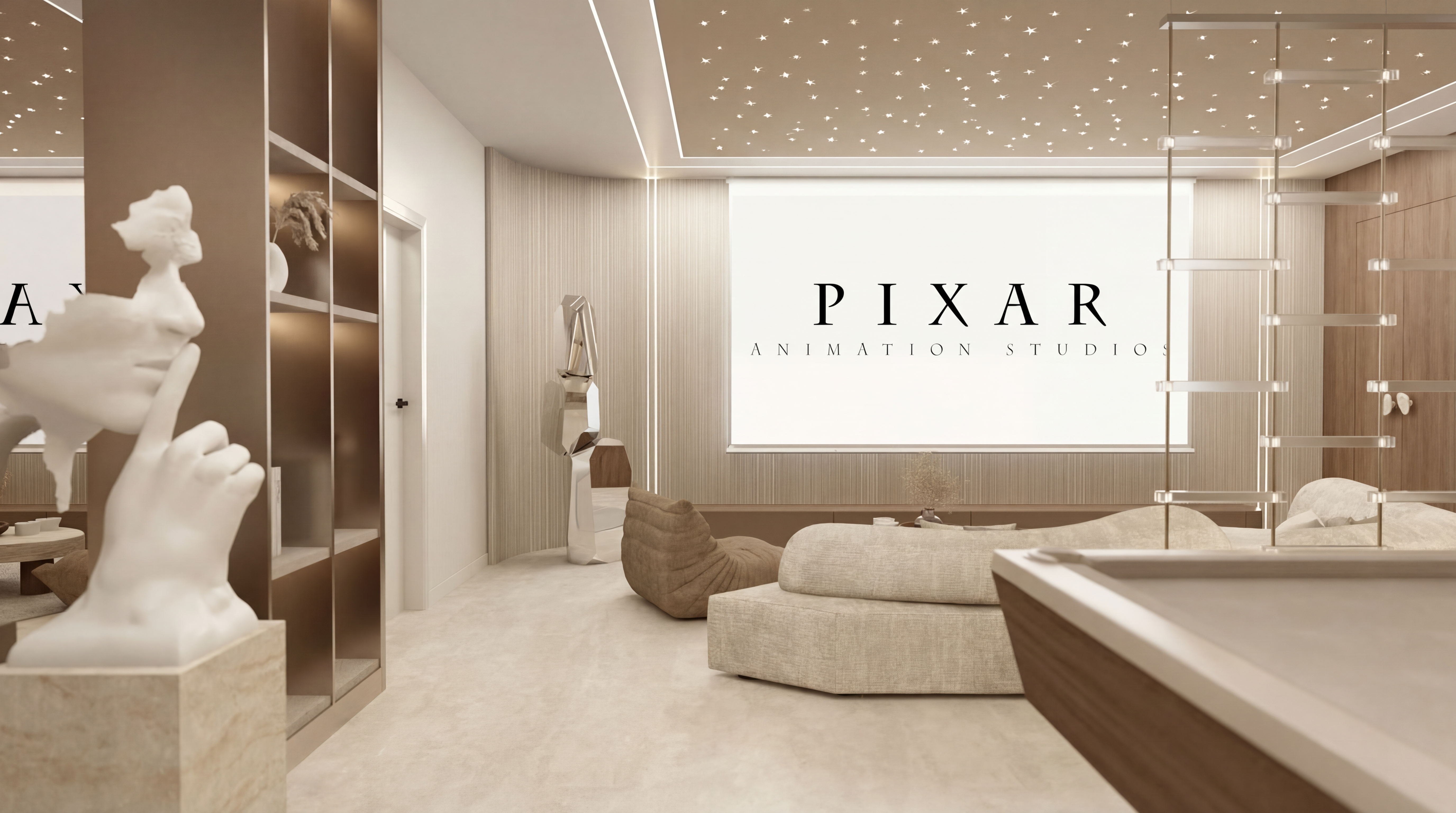 add only stars on the beige glass ceiling