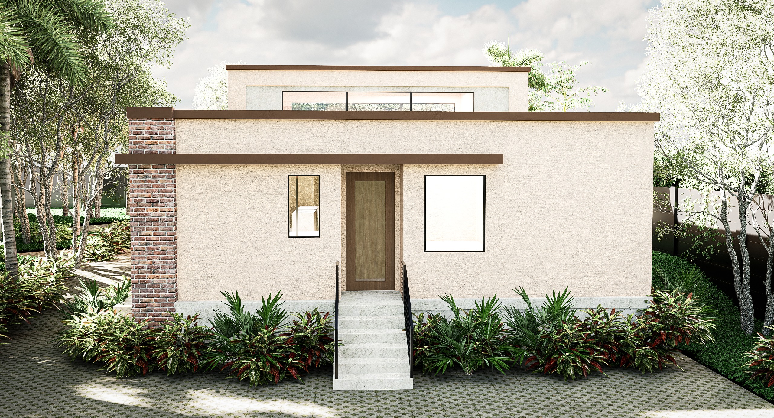 enhance the architectural depth by adding a subtle recessed shadow reveal around the upper clerestory volume thin shadow gap detail that creates a framed modern architectural look