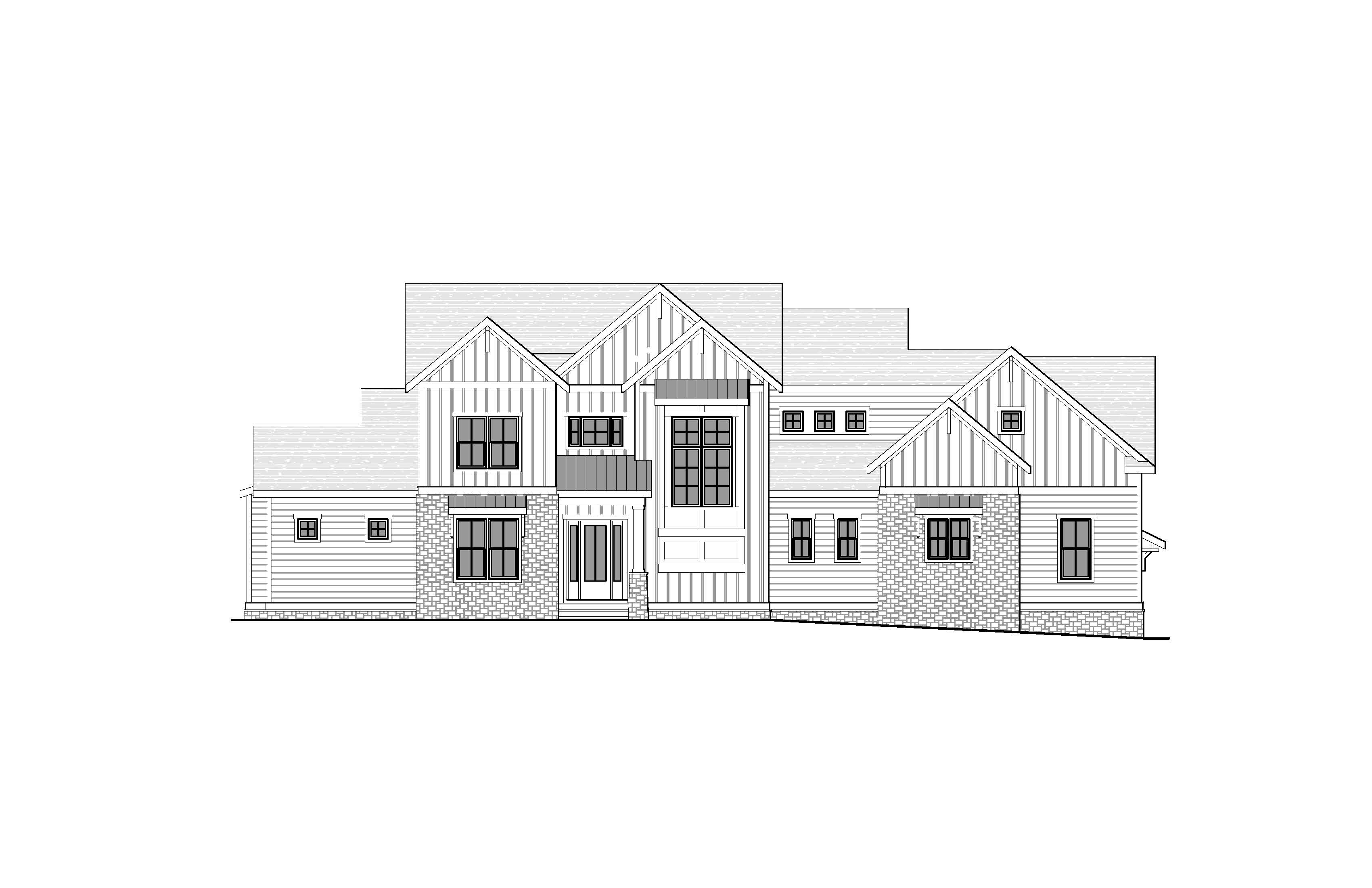 white and cream siding gray stone black window trim
