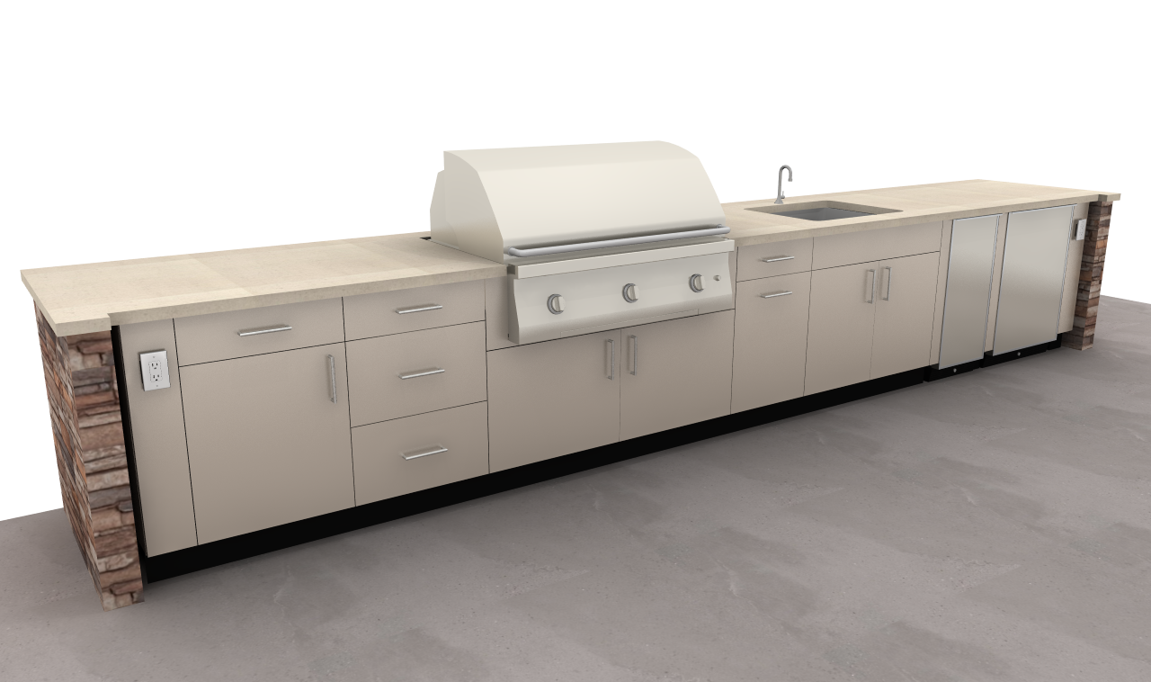 add backyard scenery add a few food items and beverages on countertop