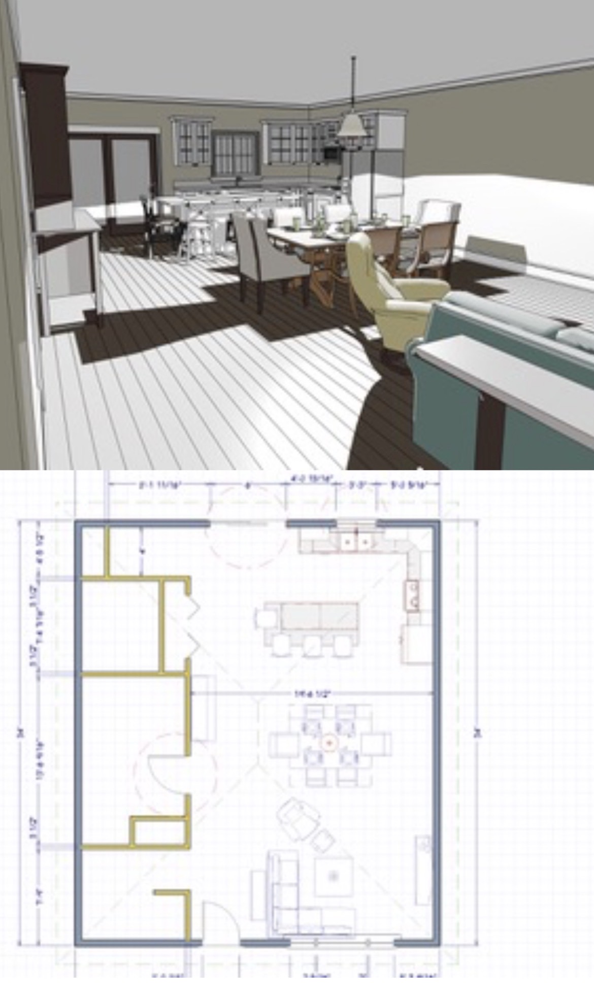 on the top portion of this image i uploaded shows a rendering of the space the bottom portion shows the drawing of the space i would like a better rendering