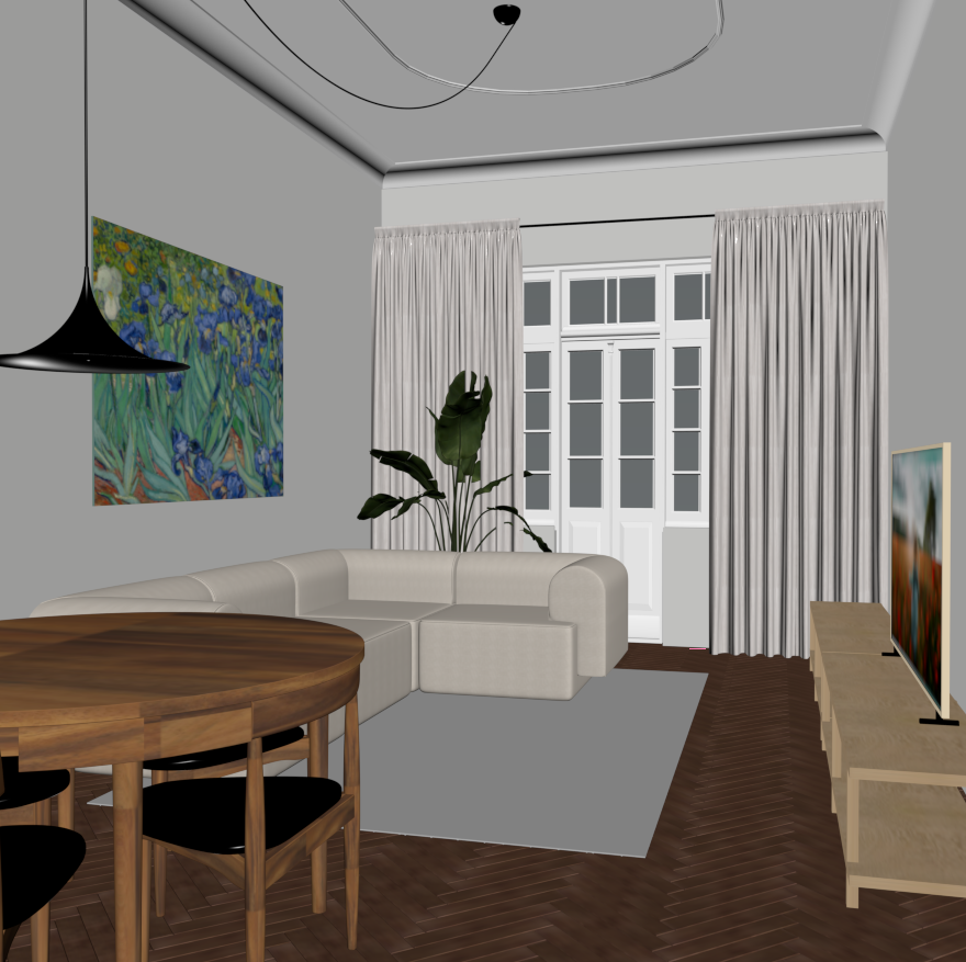 make realistic render from this view add gentle day sunlight