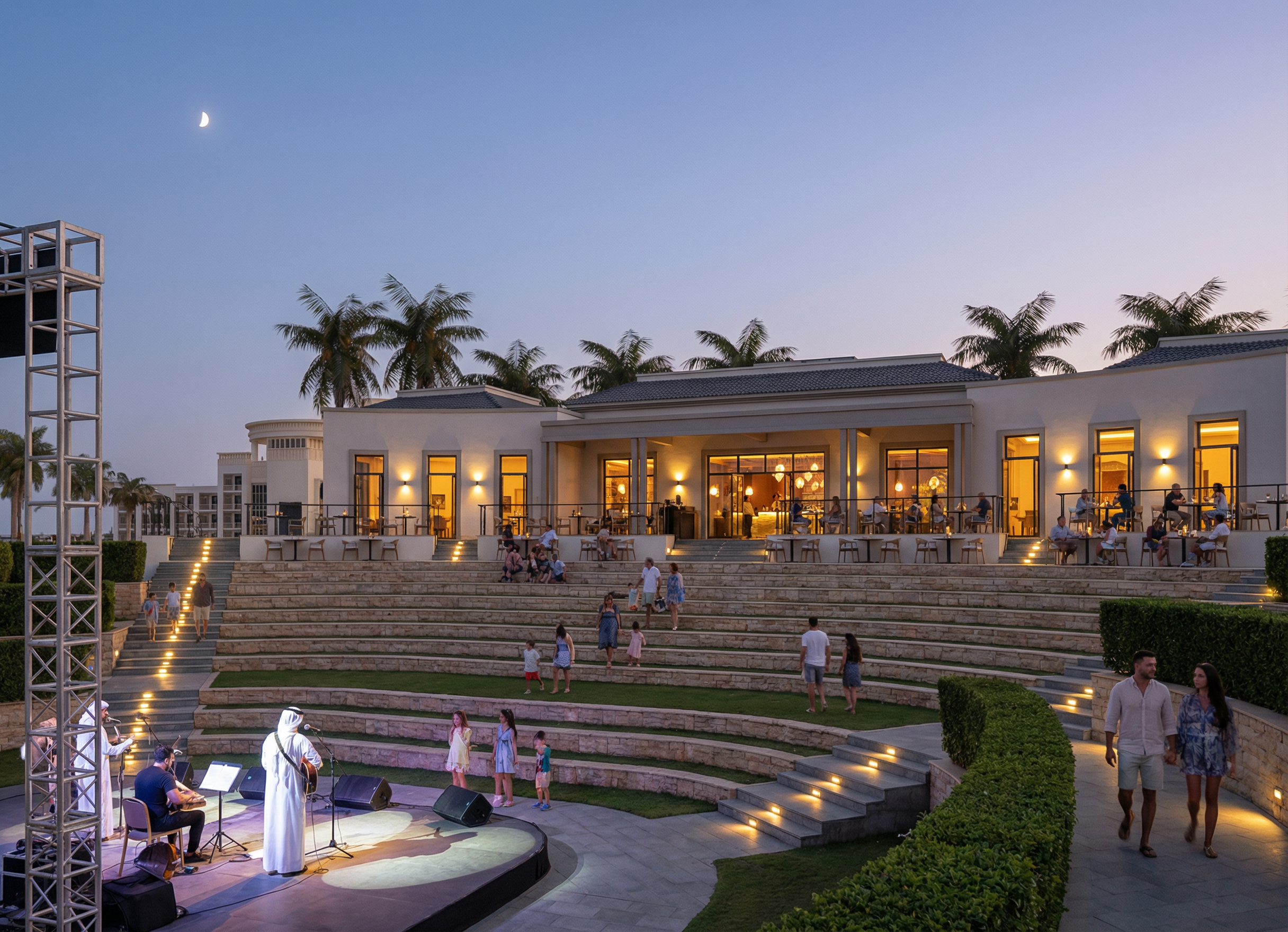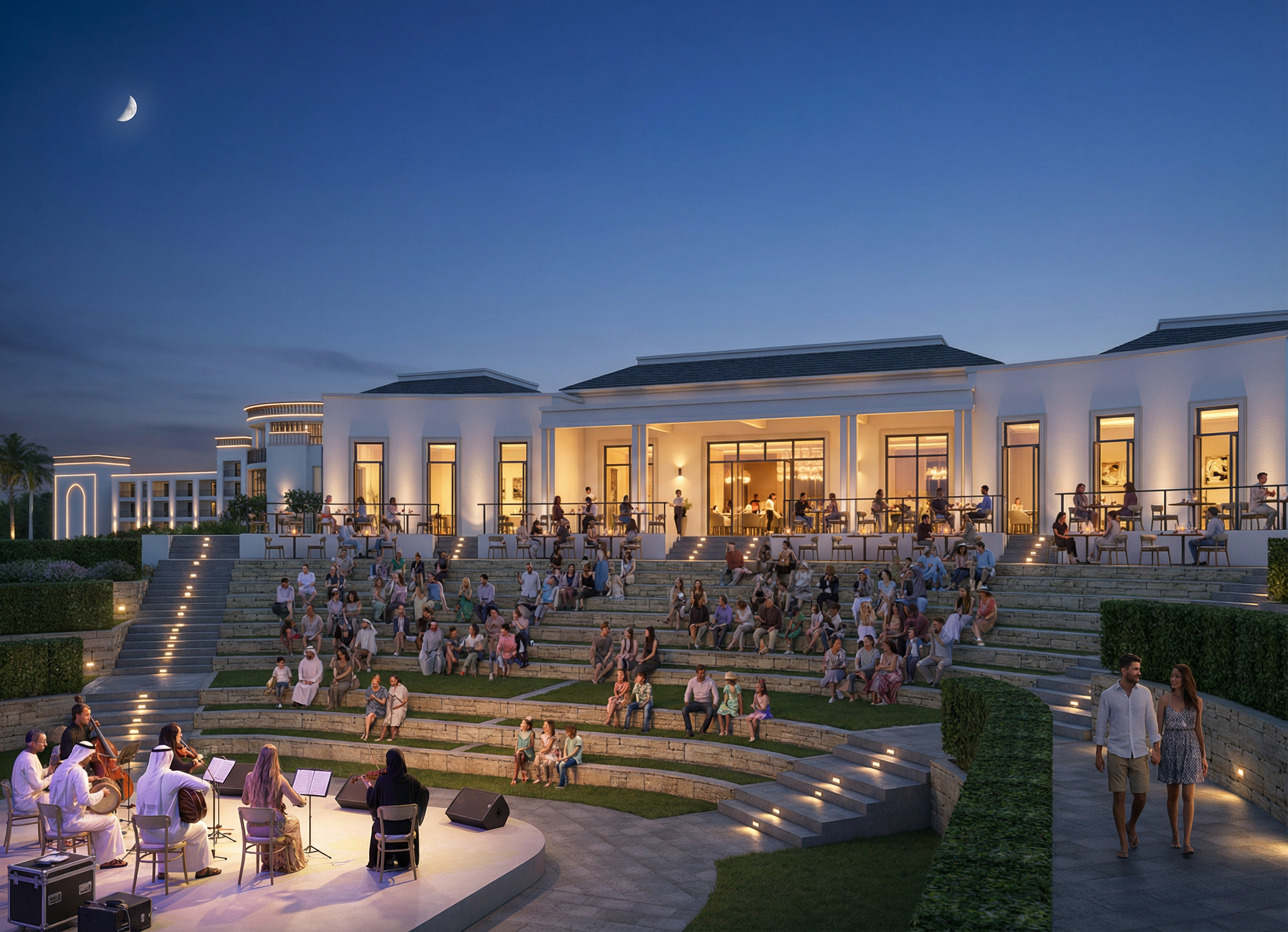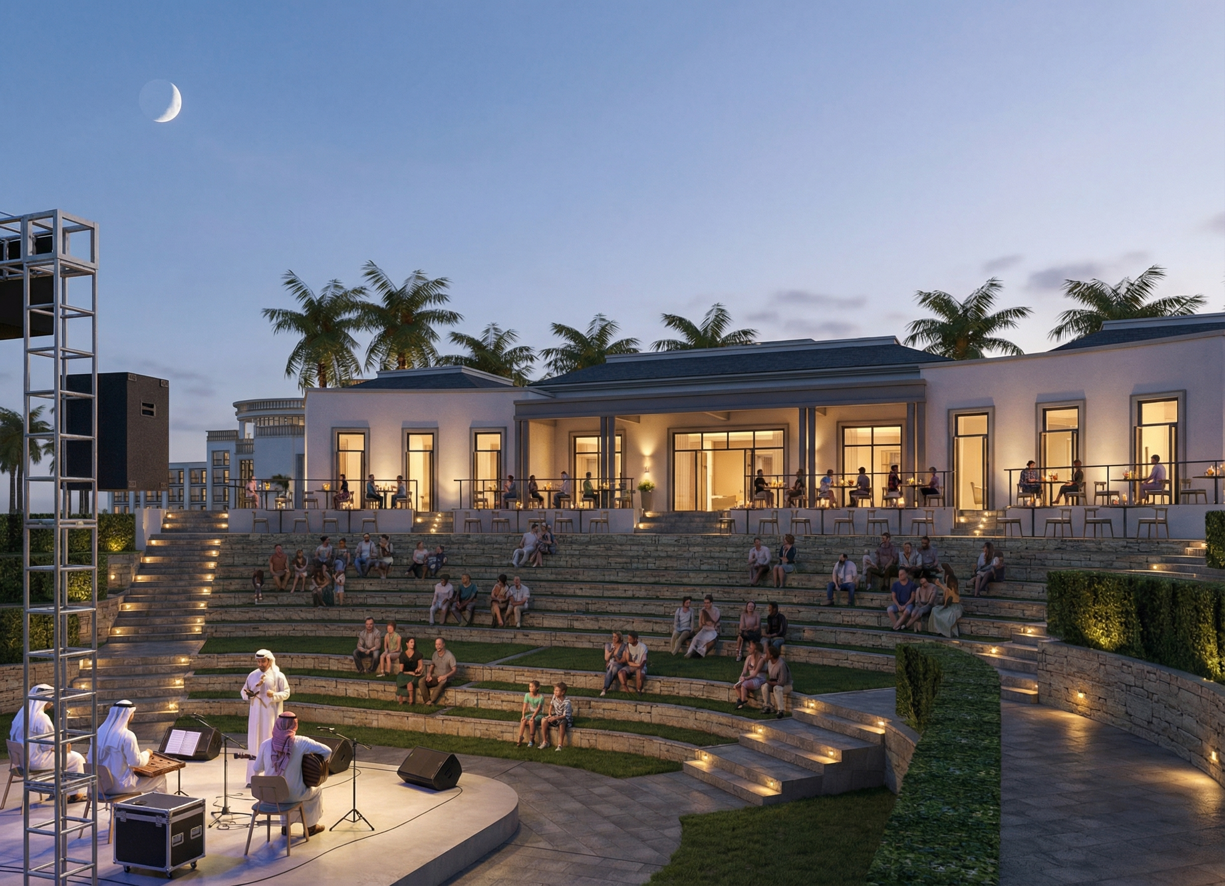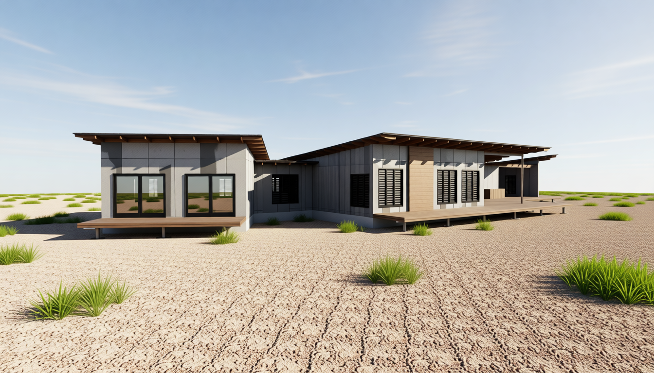 cloudy blue skies white stucco with wood cladding add recessed soffit lights add side lights next to the garage houston neighborhood background