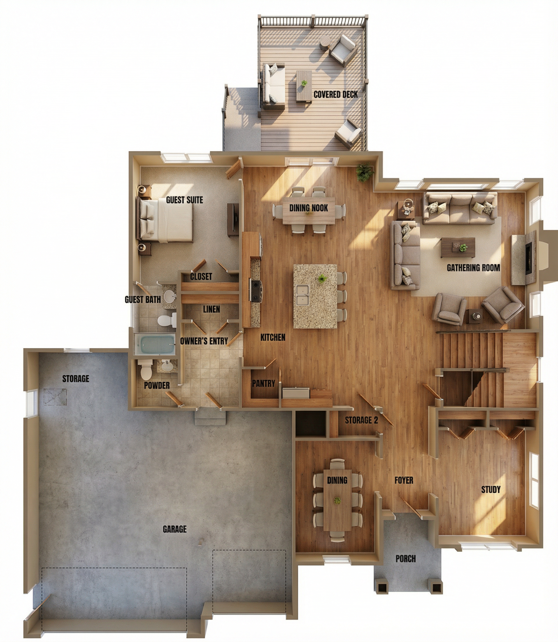 create a floorplan from the 2d picture remove all dimensions and numbers but keep any bold text keep walls and doors exactly the same as drawn