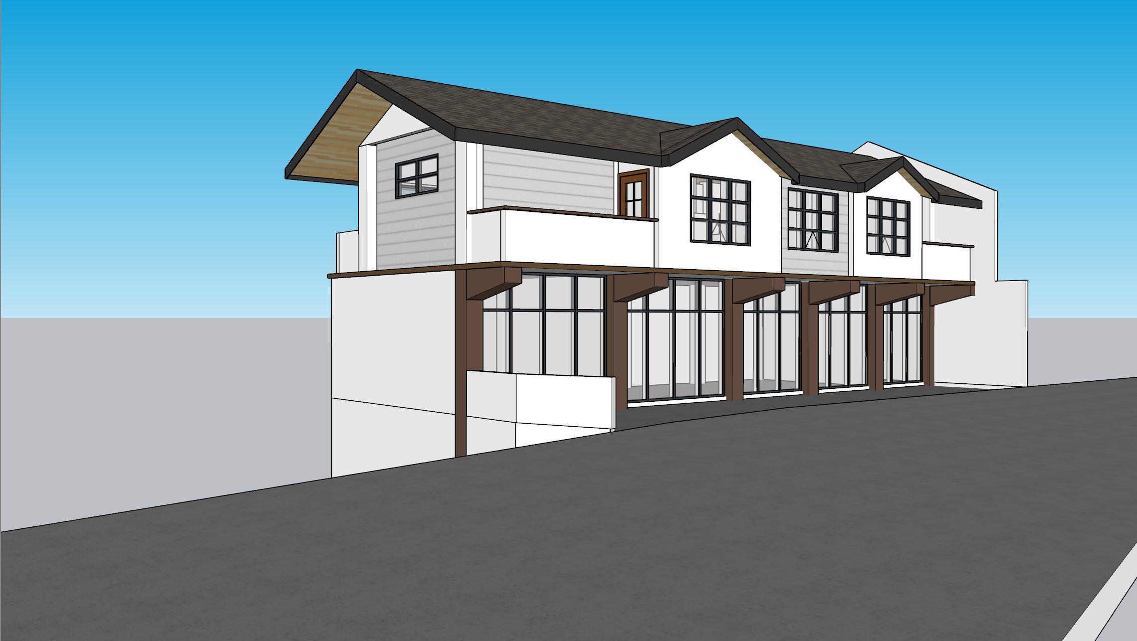 nordic exterior shot make the materials more realistic white should remain the dominant color with accents of brown and wood provide a lush green mountain backdrop and clear bright skies make the road in front look like a highway architecture
