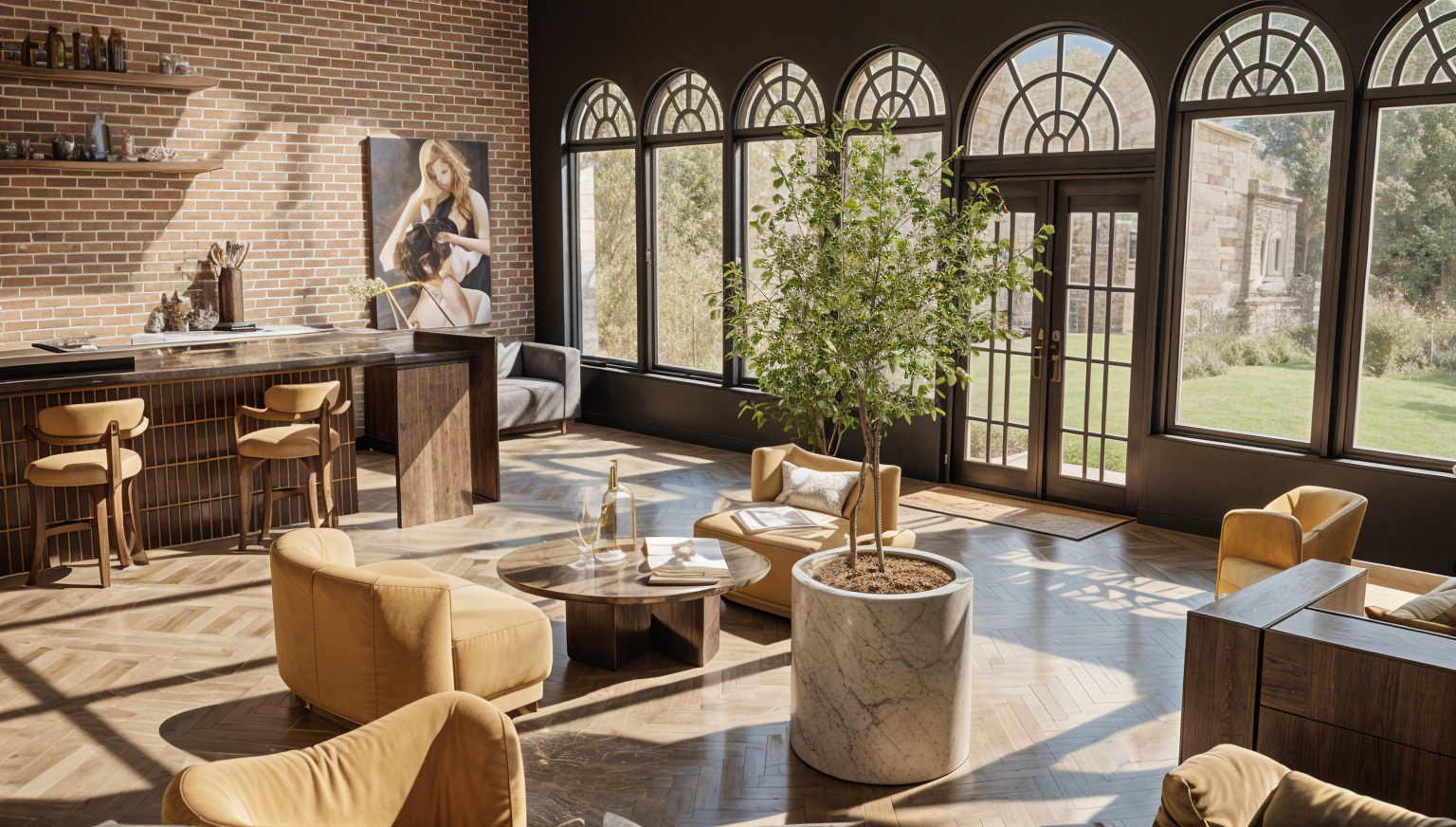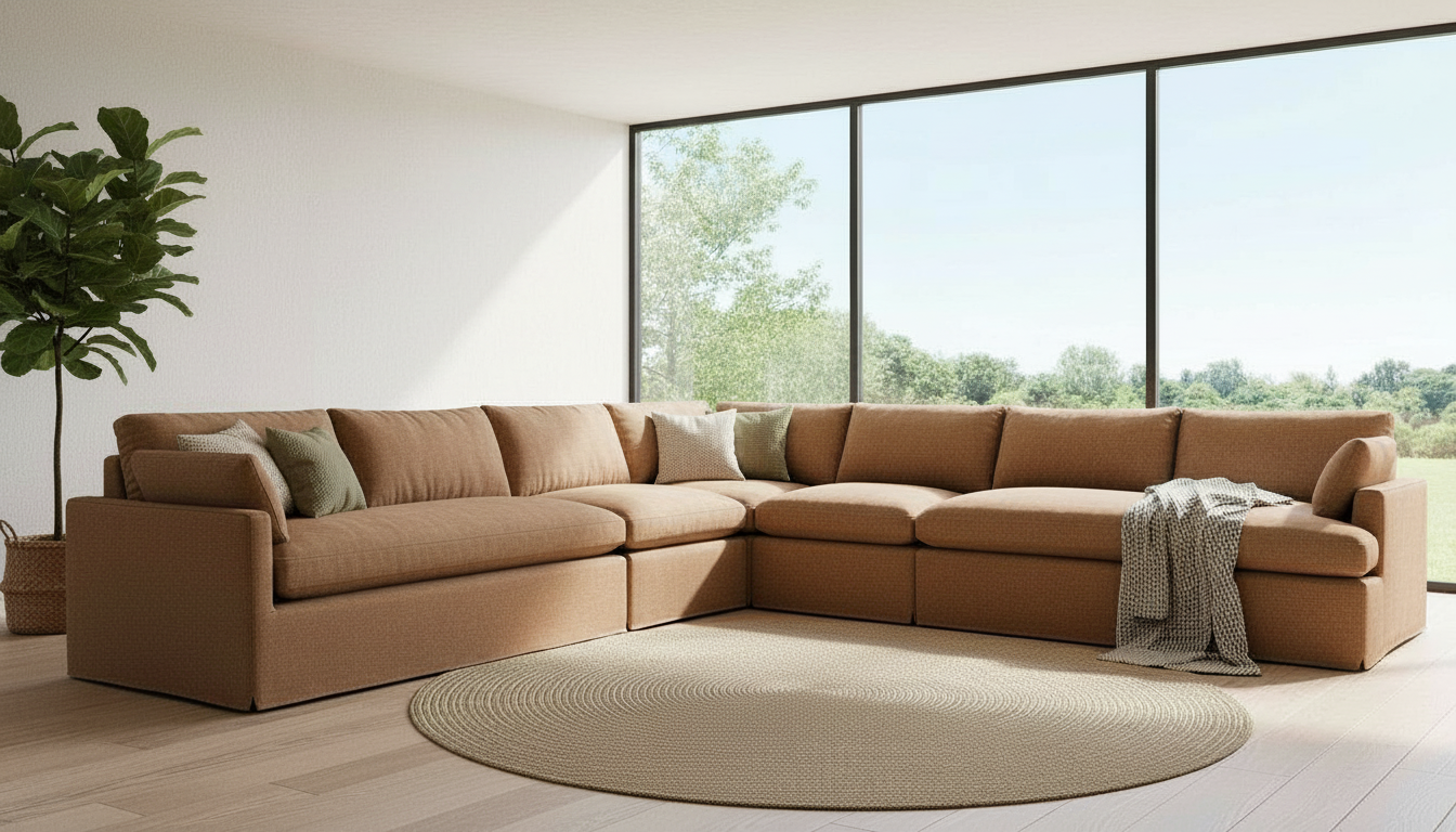 exterior shot use the mood board fabric and apply to the sofa in the image