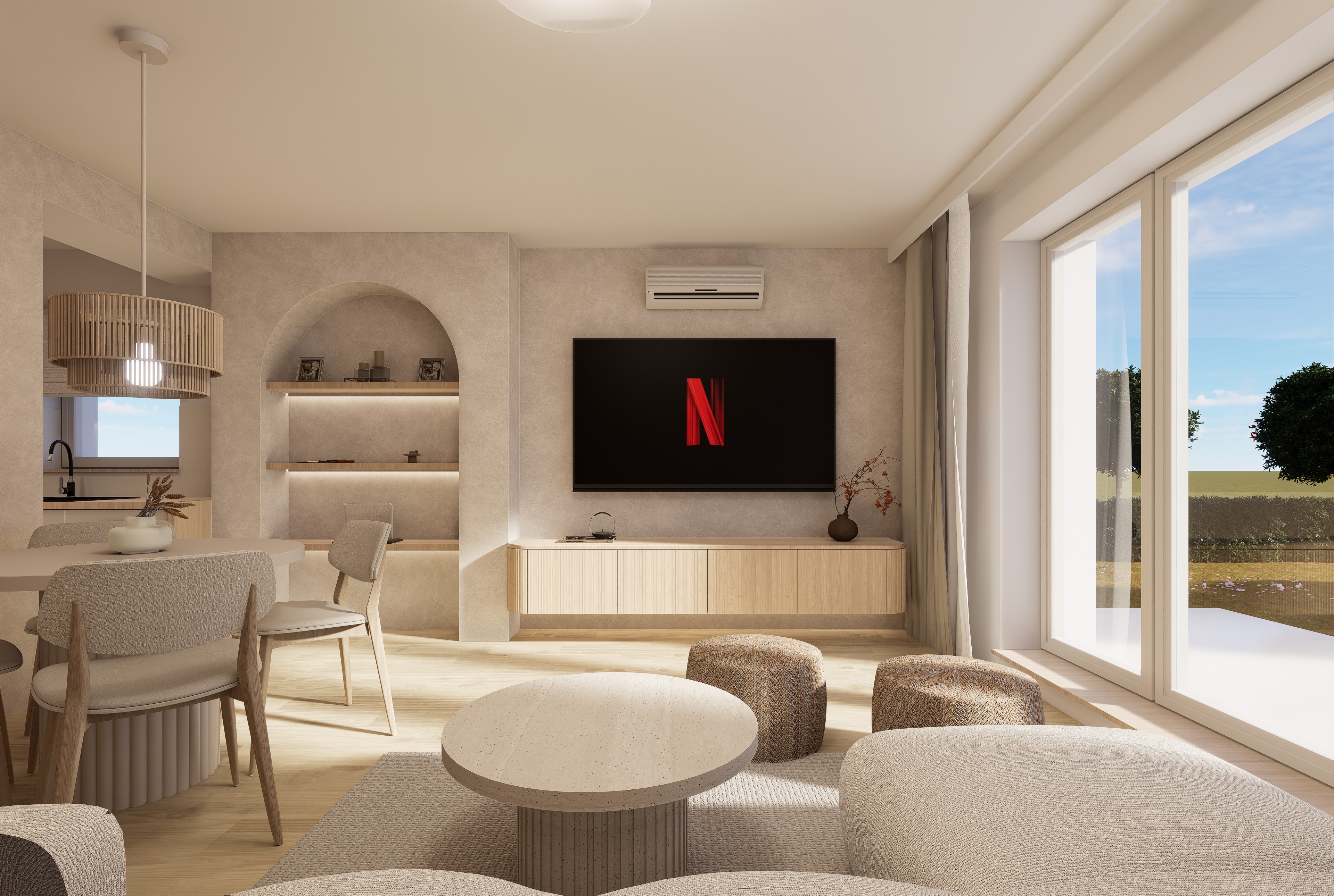 create more realistic render with existing materials do not change the scene and any elements on it