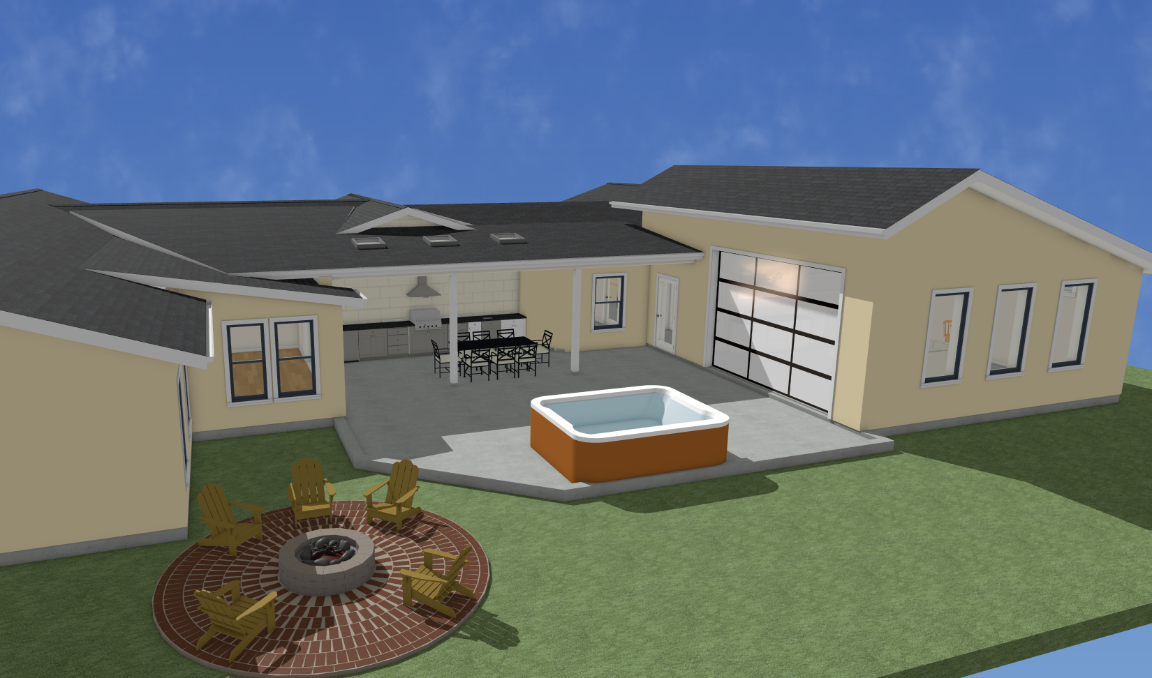 enhance this architectural rendering to photorealistic quality with the following specifications this should include tropical landscape with florida in mind this home is in a neighborhood lighting atmosphere apply natural daylight with soft realistic shadows add subtle ambient lighting that complements the time of day include realistic sun positioning and warm cool color temperature balance enhance depth with atmospheric perspective materials textures upgrade all surface materials to high resolution physically accurate textures add realistic wear weathering and imperfections to materials enhance wood grain stone texture metal reflections and fabric weaves apply proper material reflectance and roughness values environmental details add realistic landscaping with natural plant variations include environmental context neighboring structures natural surroundings add subtle weather effects slight haze natural moisture wind effects on vegetation enhance sky with realistic cloud formations and lighting interior enhancements if applicable add realistic furniture staging and accessories include proper interior lighting fixtures with realistic light fall off add lived in details like books decorative objects and natural arrangements enhance fabric and upholstery with realistic draping and texture technical improvements upscale resolution to 4k minimum apply realistic depth of field with subtle background blur add natural color grading with slight warmth include realistic reflections in windows water and glossy surfaces apply subtle film grain for photographic authenticity style photorealistic architectural photography high end residential marketing quality output 4k resolution suitable for client presentations and marketing materials