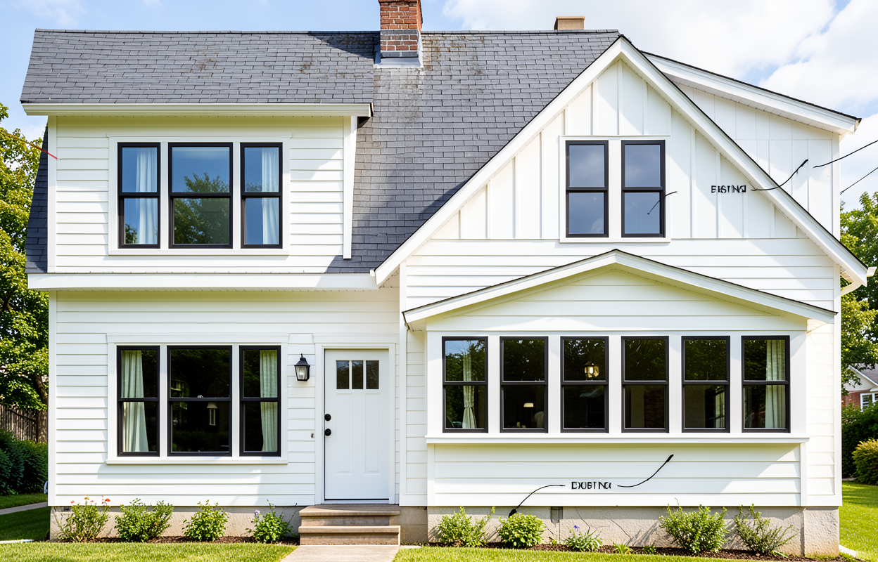 create an elevation that reflects a european cottage design using arched windows but keeping the exact same layout