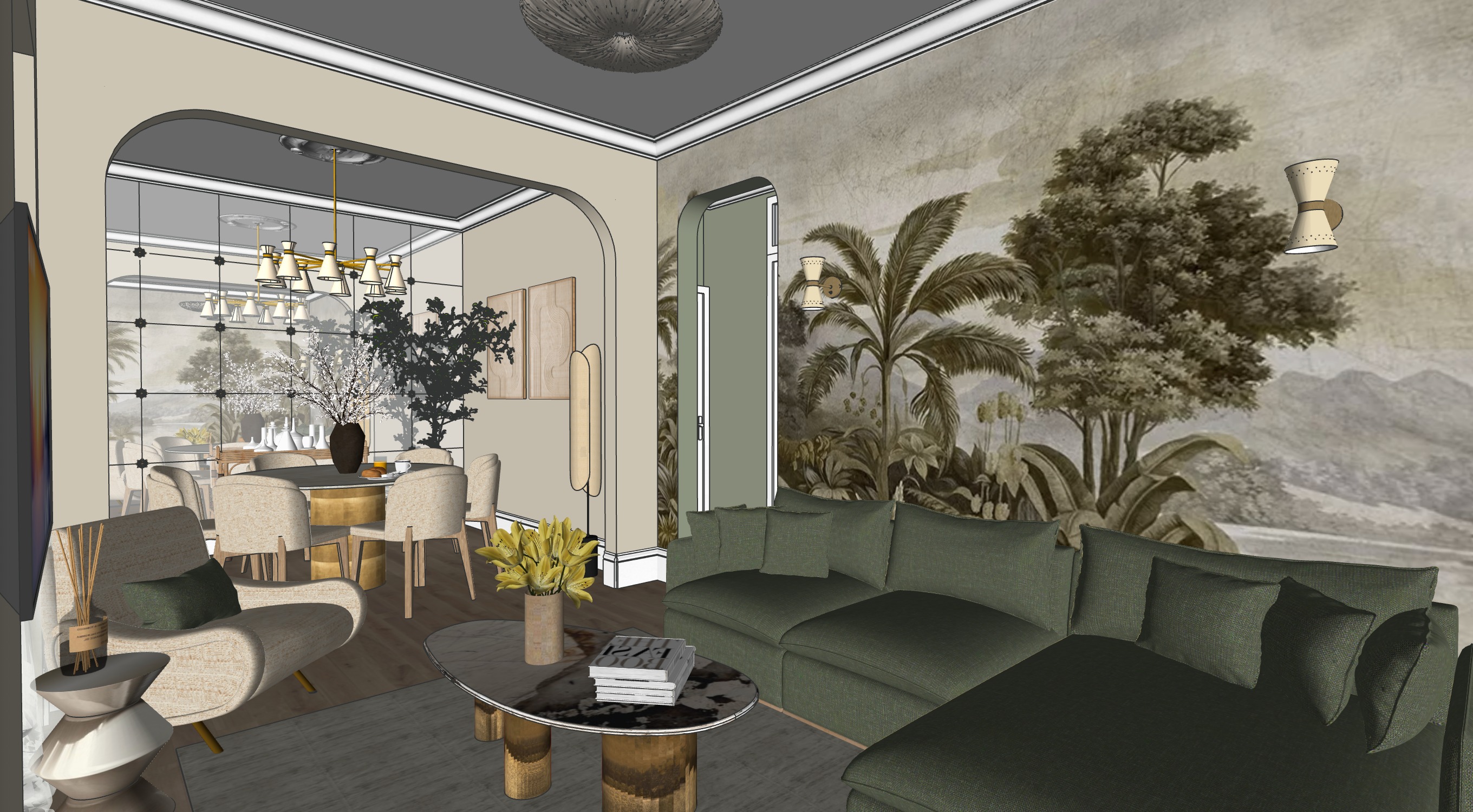 ajoute de la lumi re naturelle venant de la gauche allume les lumi re le mur du fond derri re la table est en miroir vieillit ne change rien d autre