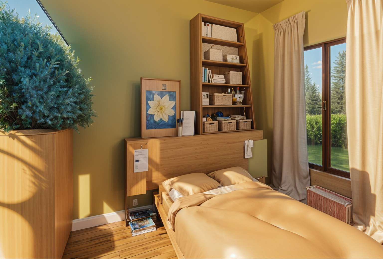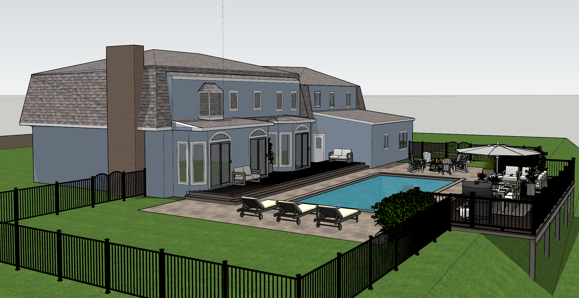 lush trees background wood deck paver patio