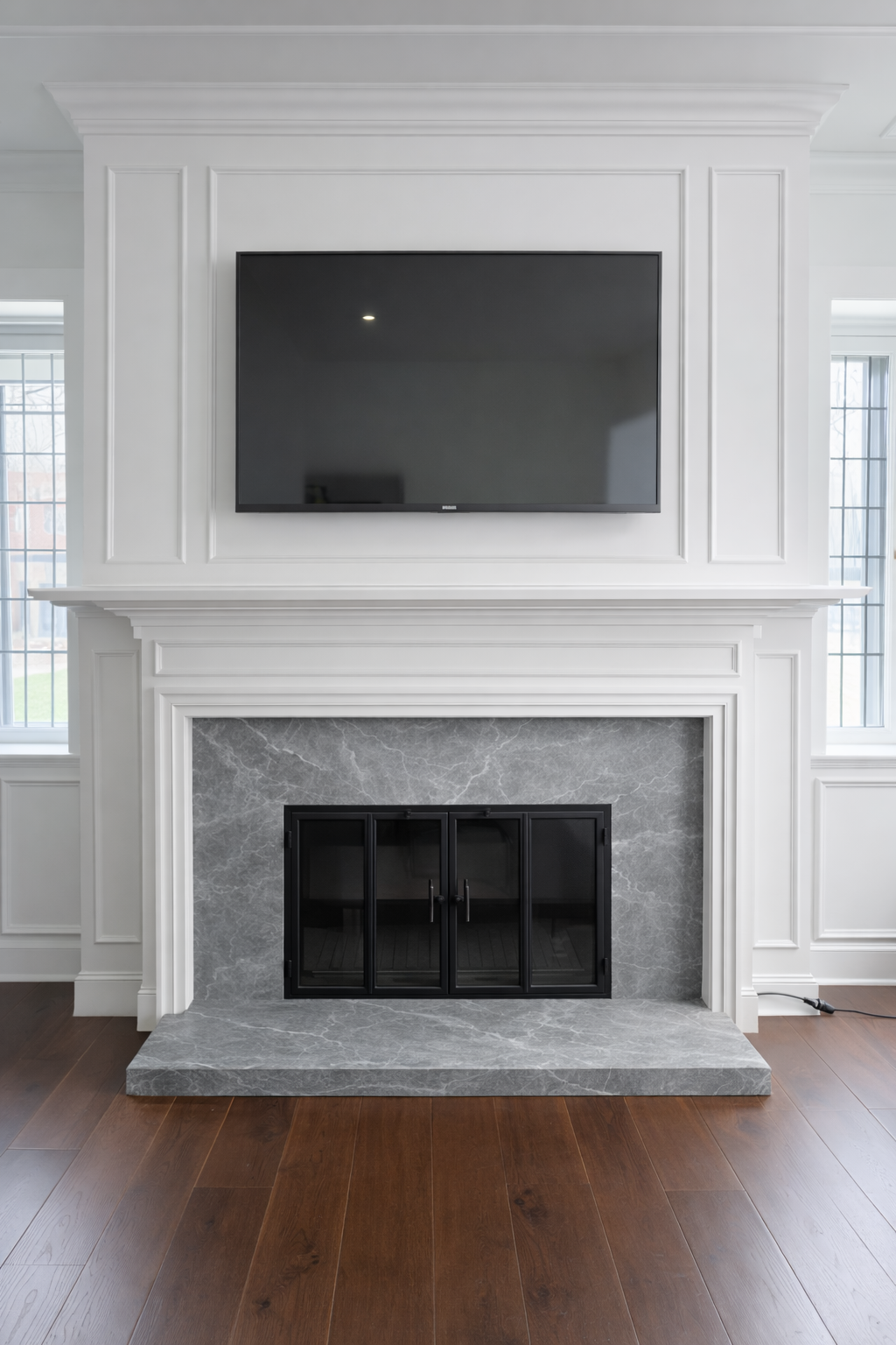 lower stone hearth 4 below wood floor fireplace doors extend down too