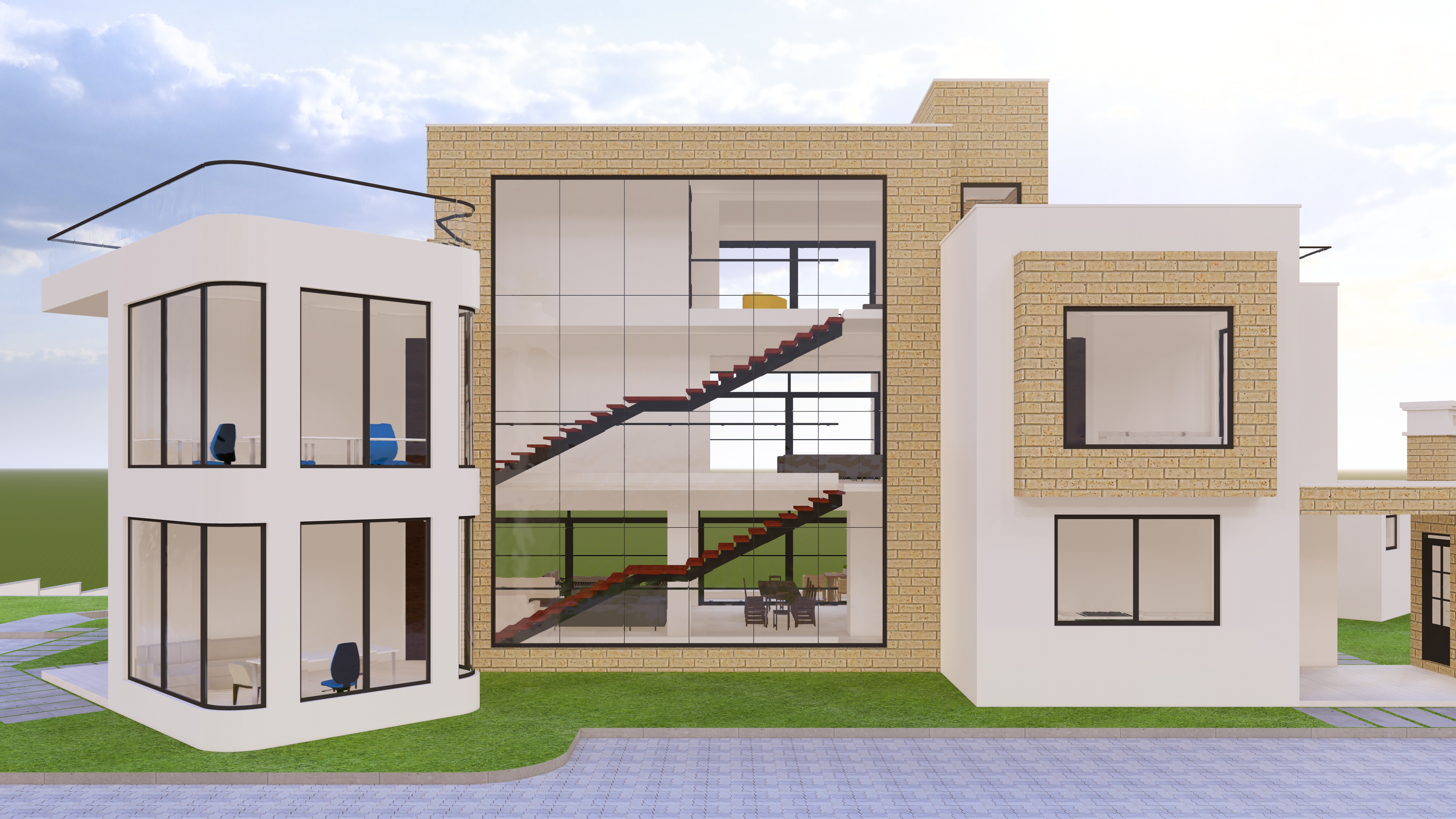 add few trees and some vegetation in the very far far background to give this house render context