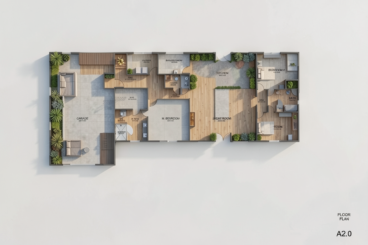 ultra realistic architectural interior render editorial quality keep the exact composition camera angle proportions and layout of the original image do not reinterpret the design lighting add three ceiling spotlights aligned in a straight line parallel to the camera positioned above the island warm light soft and realistic emission subtle shadows no overexposure materials all beige surfaces island backsplash walls must be large format porcelain approx 120x120 cm sand effect matte finish rectified pieces with almost invisible joints very subtle variation in tone and texture avoid flat or plastic appearance wood elements enhance realism of wood cabinets and stools natural walnut tone visible grain slight tonal variation completely matte no artificial shine or repetition shelf and wall lights the shelf and the two wall sconces must be brushed gold soft metallic reflection slightly warm not mirror like stools keep the exact design and proportions change only the seat upholstery to deep burgundy velvet granate rich tone soft light absorption visible fabric texture slightly worn in contact areas details and realism add micro imperfections slight edge wear minimal dirt accumulation in joints subtle variation in materials improve contact shadows and ambient occlusion avoid perfectly clean or synthetic look lighting atmosphere warm balanced slightly cinematic and editorial soft contrast delicate highlights no harsh glare final look highly photorealistic editorial interior photography style tactile materials natural imperfections believable light and depth no cgi look