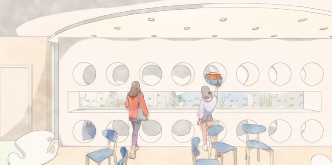interior shot help me make this image look more realistic i want to see the backs of peoples heads architecture
