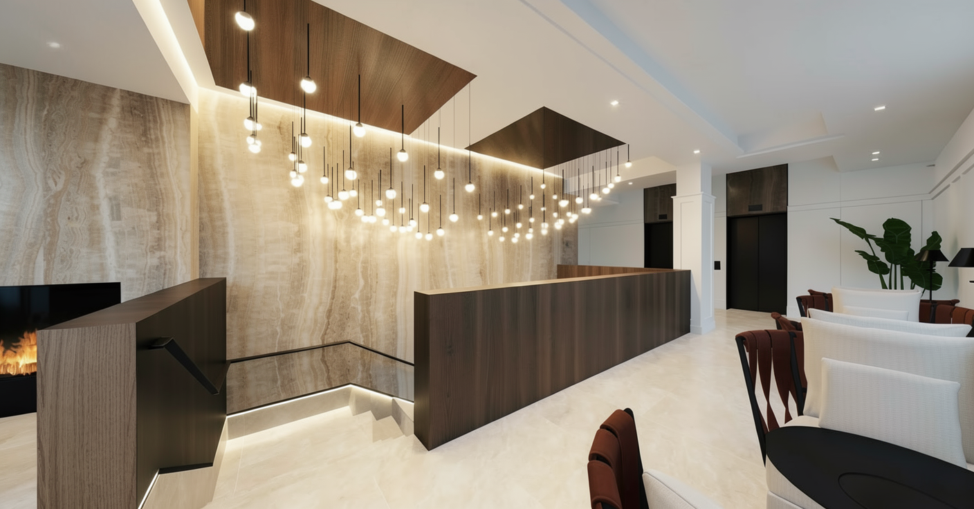 il legno rovere naturale l onice semi opaca il nero metallo scuro strip led sulla scala incassata nel profilo nero in basso