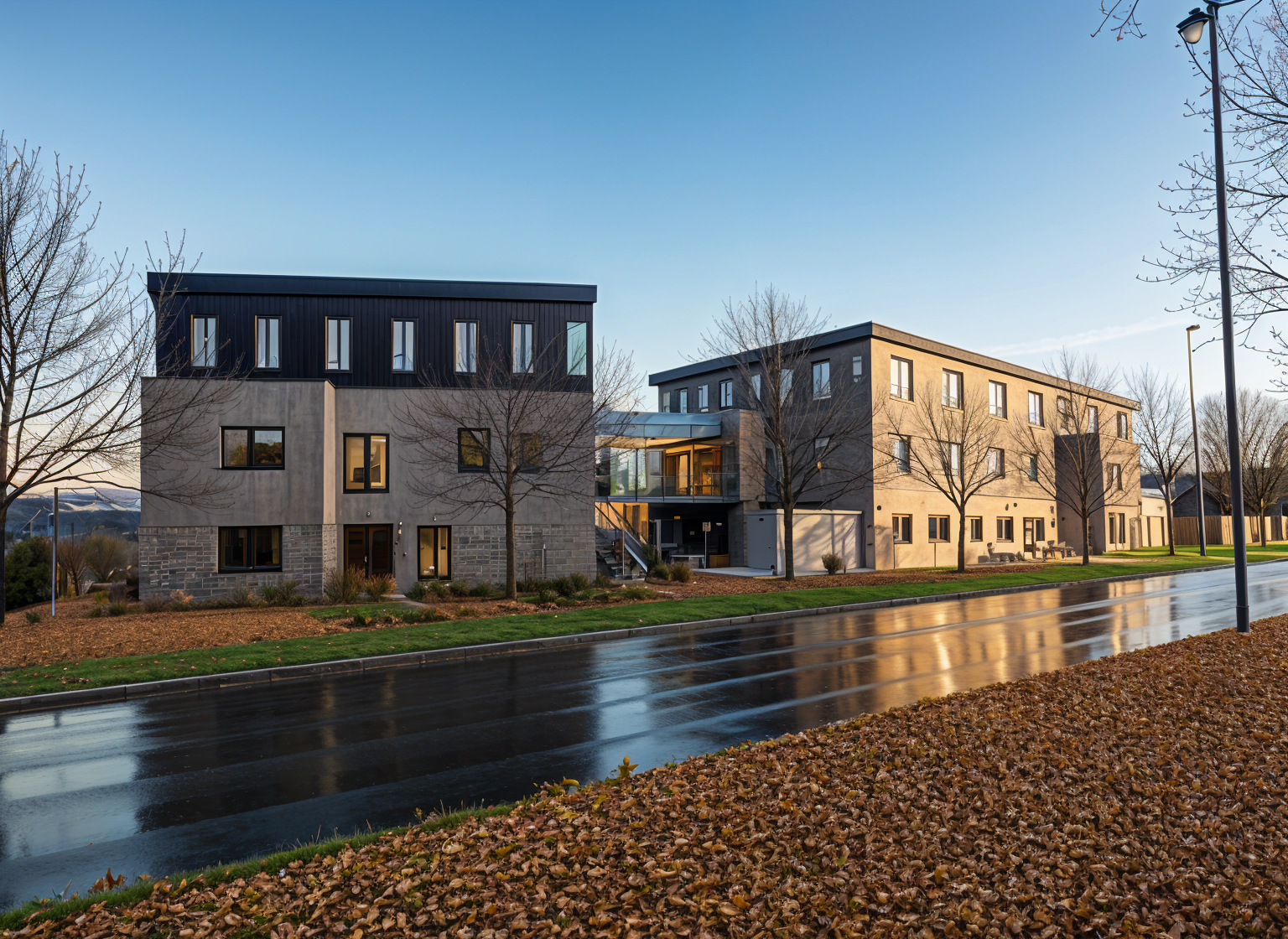 le corbusier exterior shot alzheimer home first two floors grey facade third floor black metalfacade roof black metal interiors in windows architecture